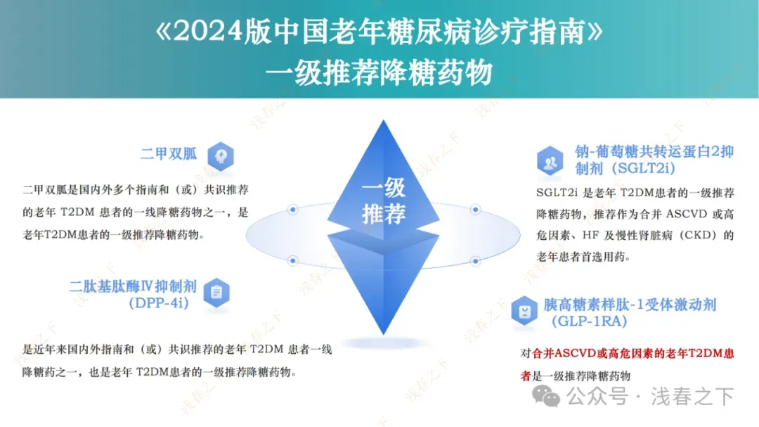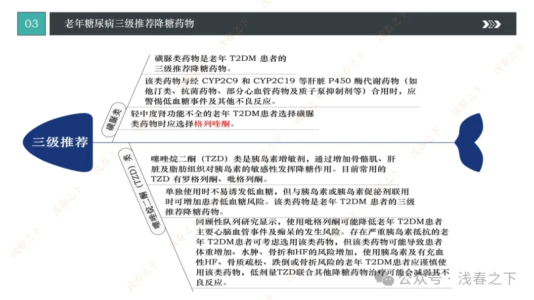 医学课件——老年糖尿病患者降糖药物的选择(一、二、三级降糖药物)