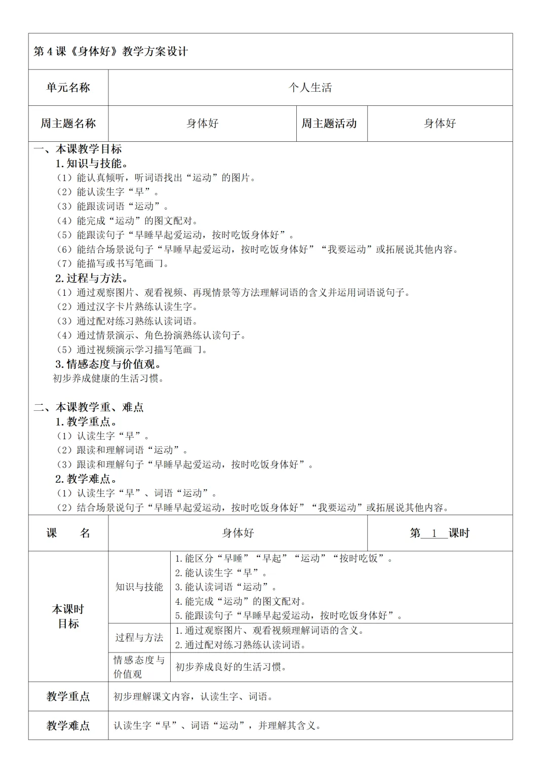 >人教版《培智生活》语文二年级下册教案,可下载编辑!