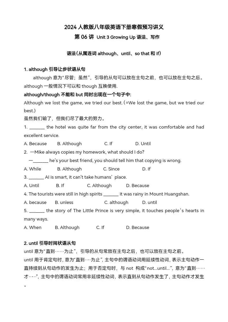 当前位置:首页>讲义>八年级英语下册寒假预习讲义06
