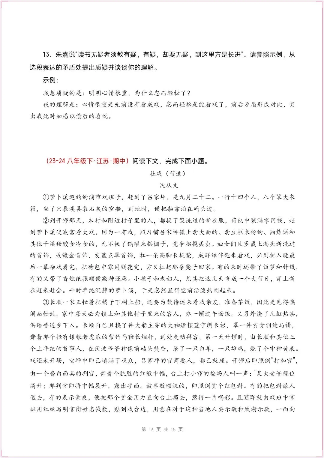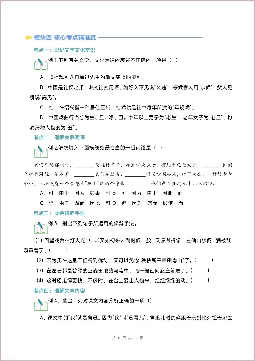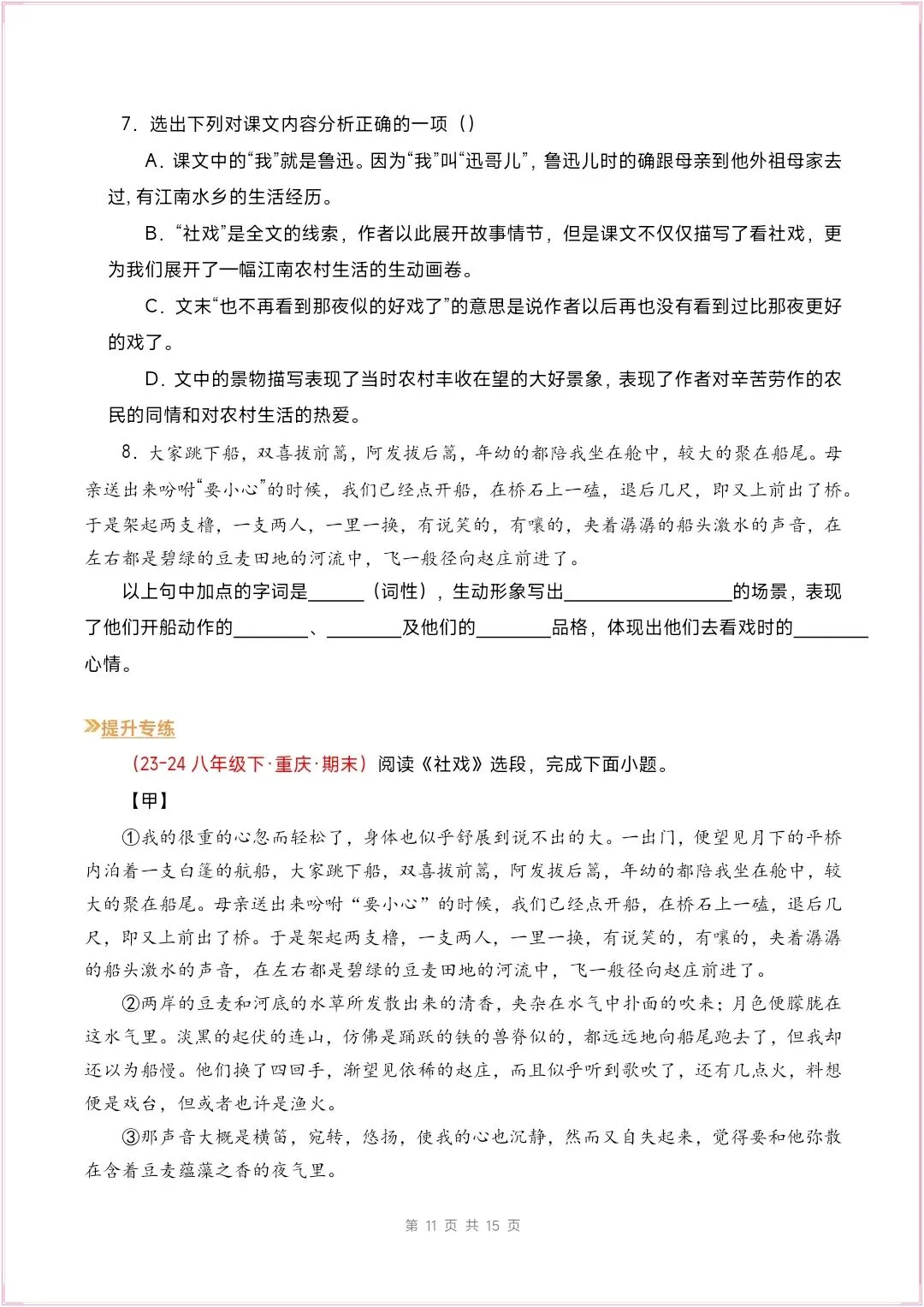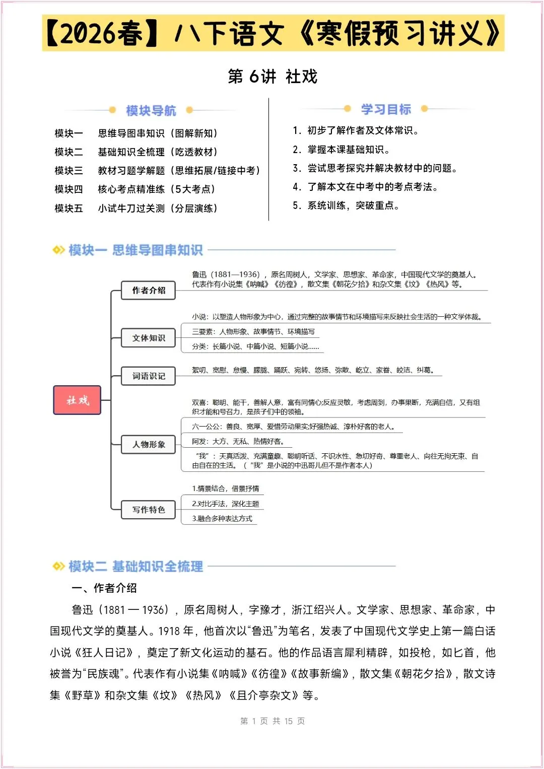 【2026春】八下语文《寒假预习讲义》,有完整电子版Word文档(学生版+教师版),可下载可打印