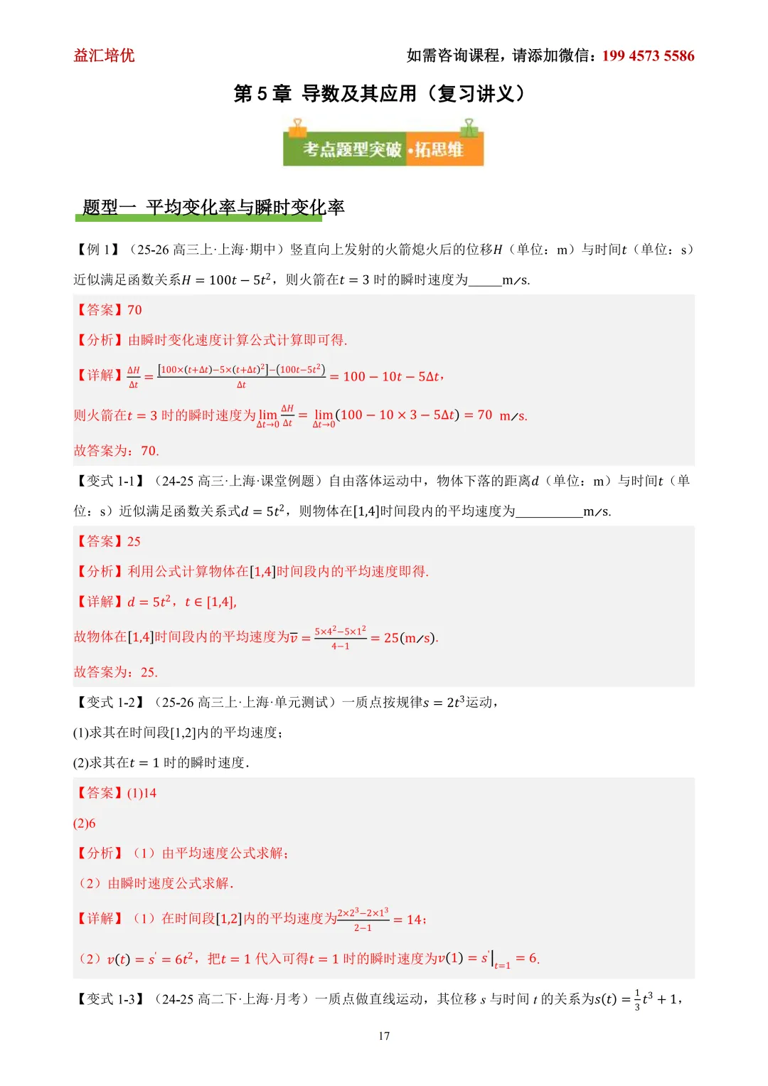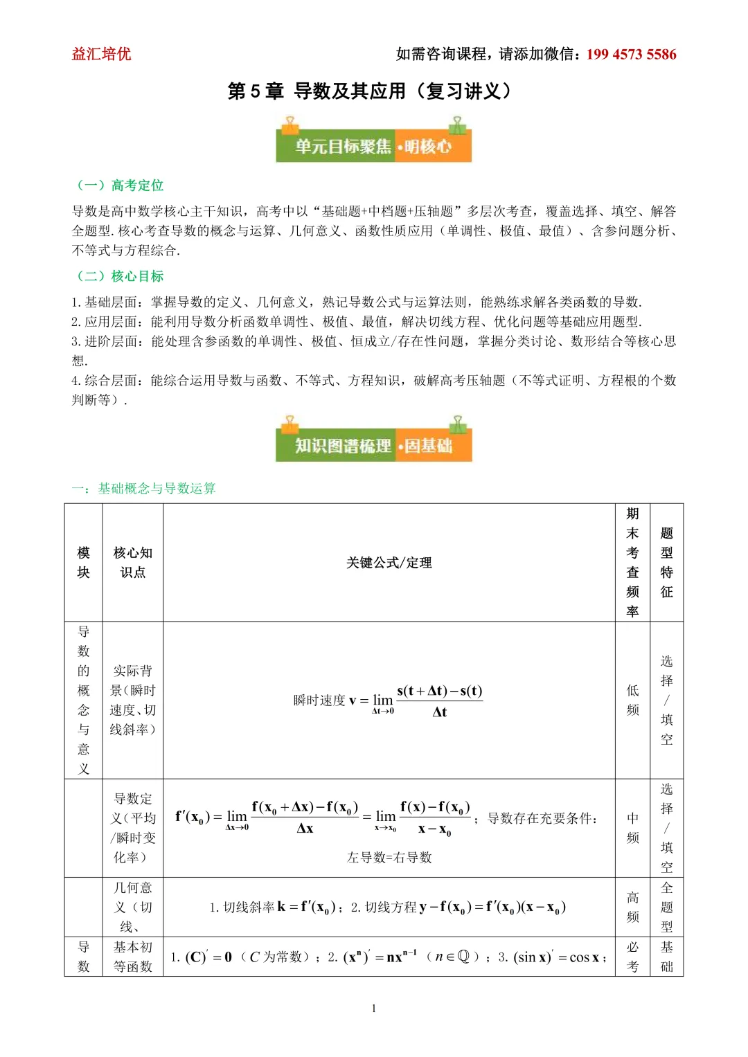今天给大家带来的是高二下数学第5章 导数及其应用(复习讲义)(含答案)。