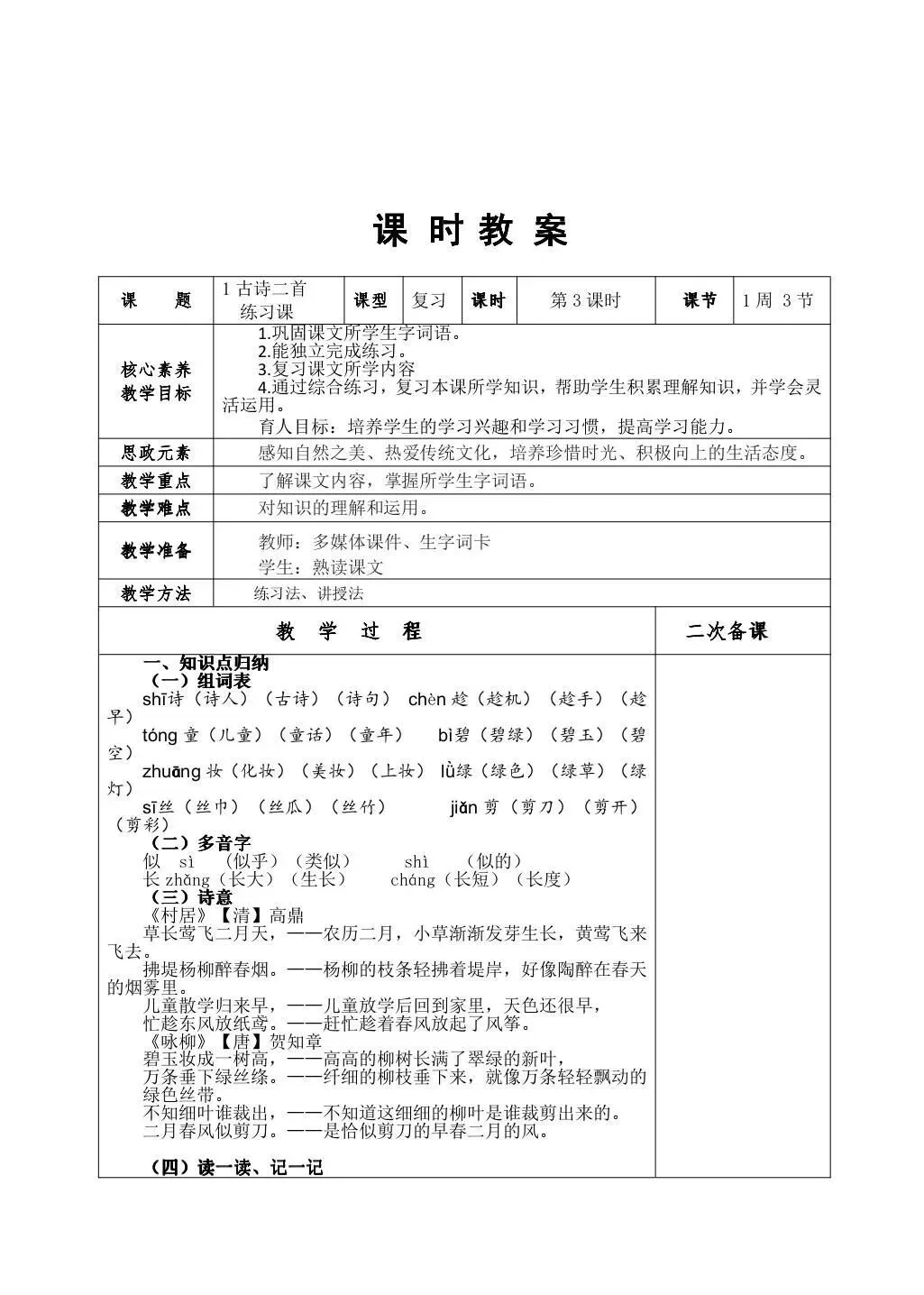 有二次备课和反思栏 有教学计划 有教学进度表 是根据新版教材重新整理的
