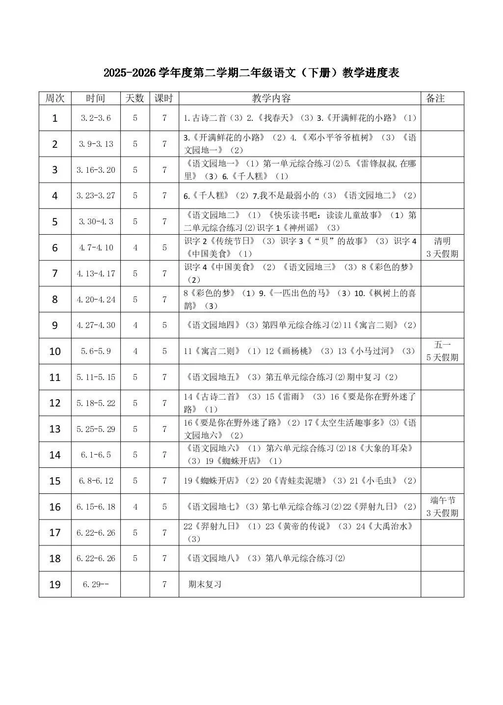 新版️2026春新版二年级下册语文教案