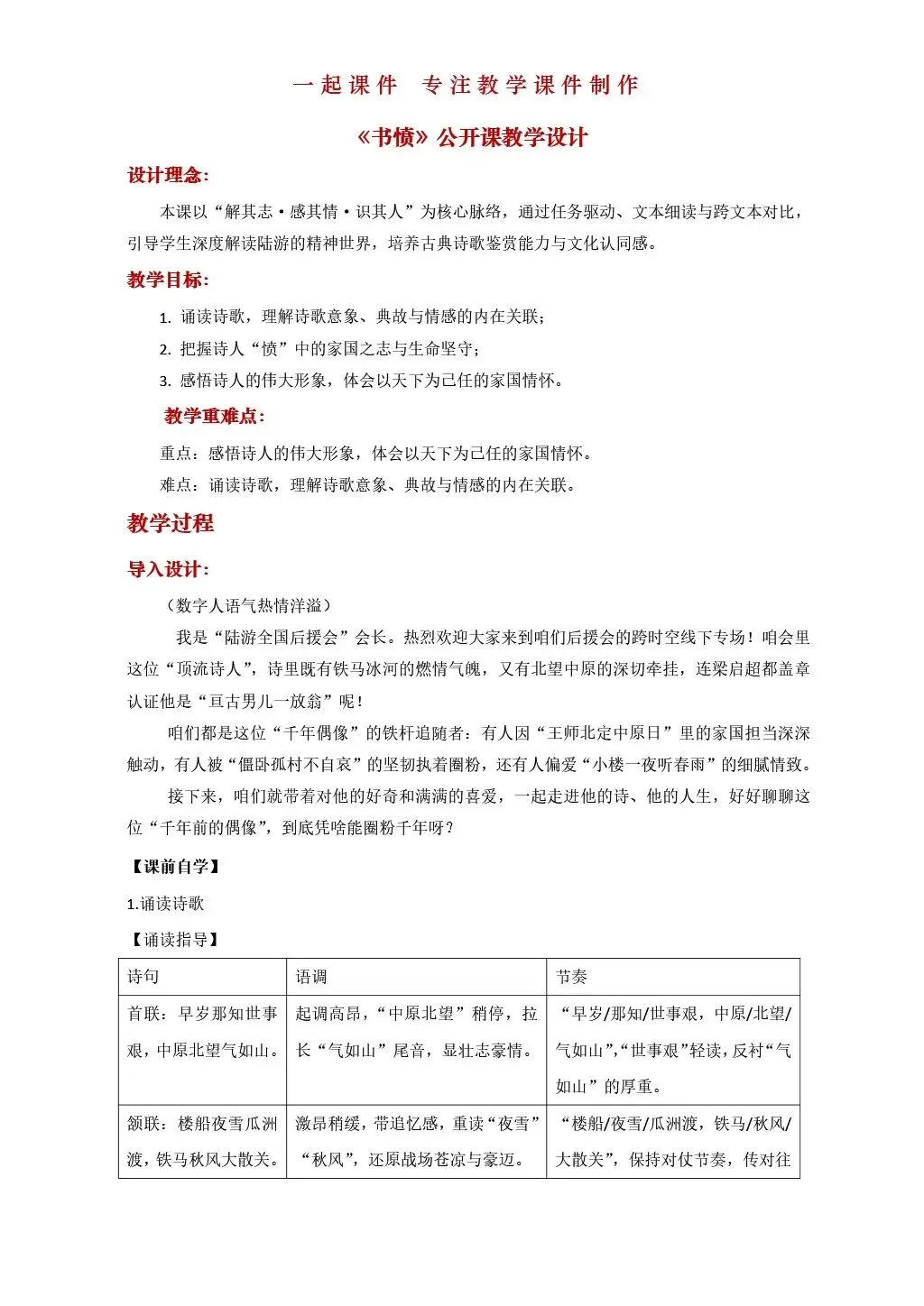 【名师精品公开课系列】| 《书愤》:课件+教学设计+导学案