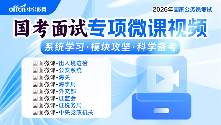 《2026年国考面试专项微课视频》国面微课-出入境边检、公安系统、海关、海事局、外交部、证监会、证税务局、中央党政机关分模块攻坚,学会科学备考。