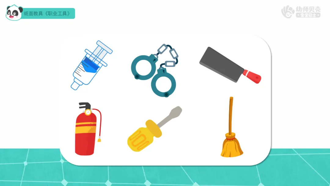 1)幼儿从“职业神秘箱”中抽取一张纸面教具,即某种职业所用的工具。