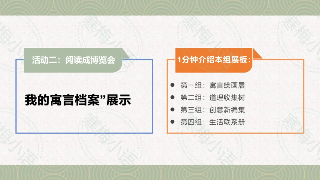* 第一组:寓言绘画展 * 第二组:道理收集树