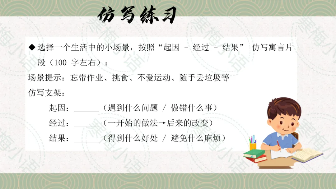 3. 从寓言故事中汲取正能量,学习善良、诚实、谦虚等美好品质,树立正确的价值观。
