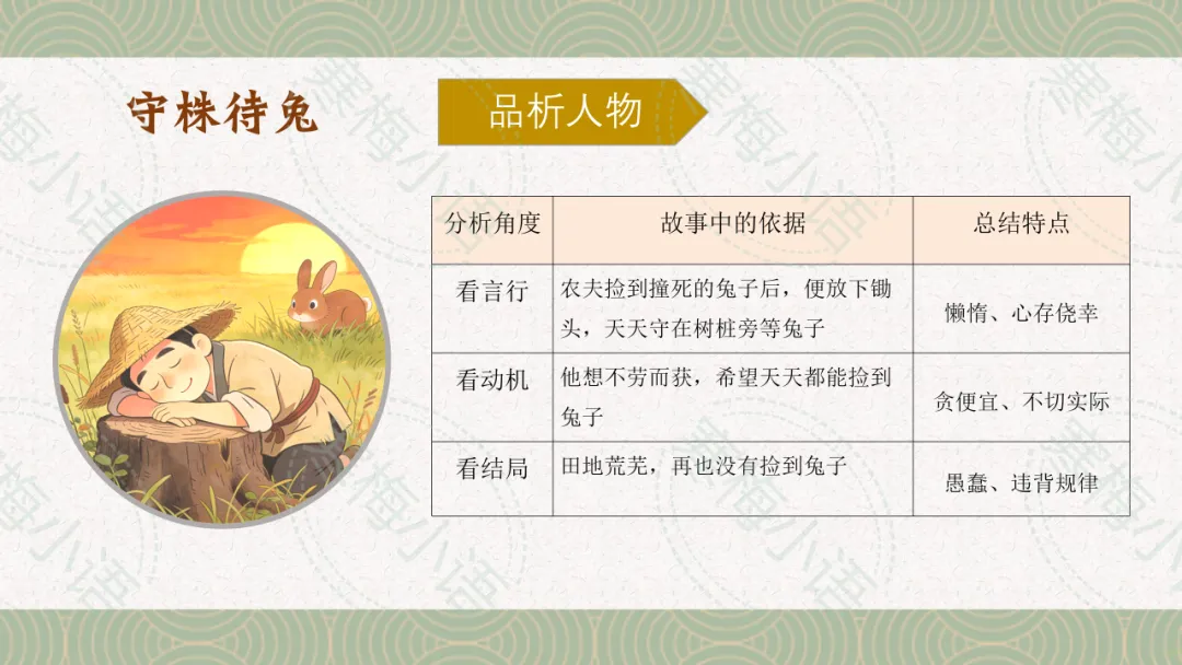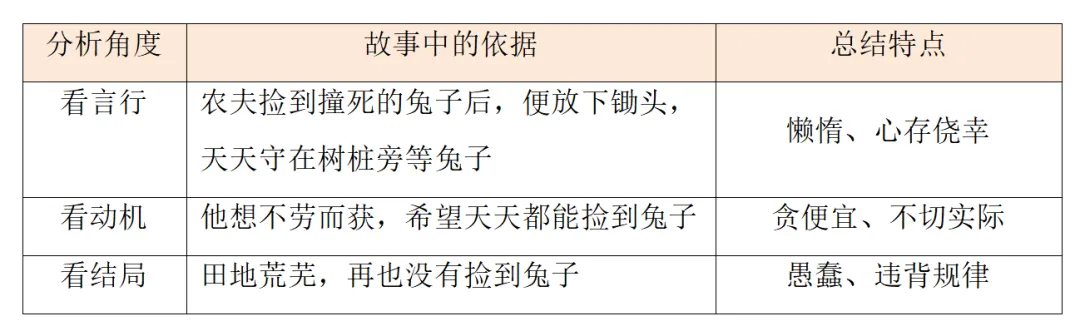 以《守株待兔》中的农夫为例,带领学生梳理分析步骤: