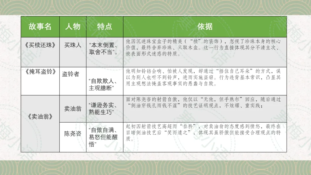 《中国古代寓言》大多是写人的,认识各种各样的人物,是必不可少的环节。