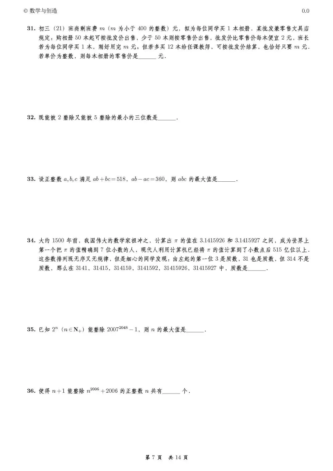 证明: 是 的倍数。4. 求最大的正整数 ,使得存在正整数 ,满足 。