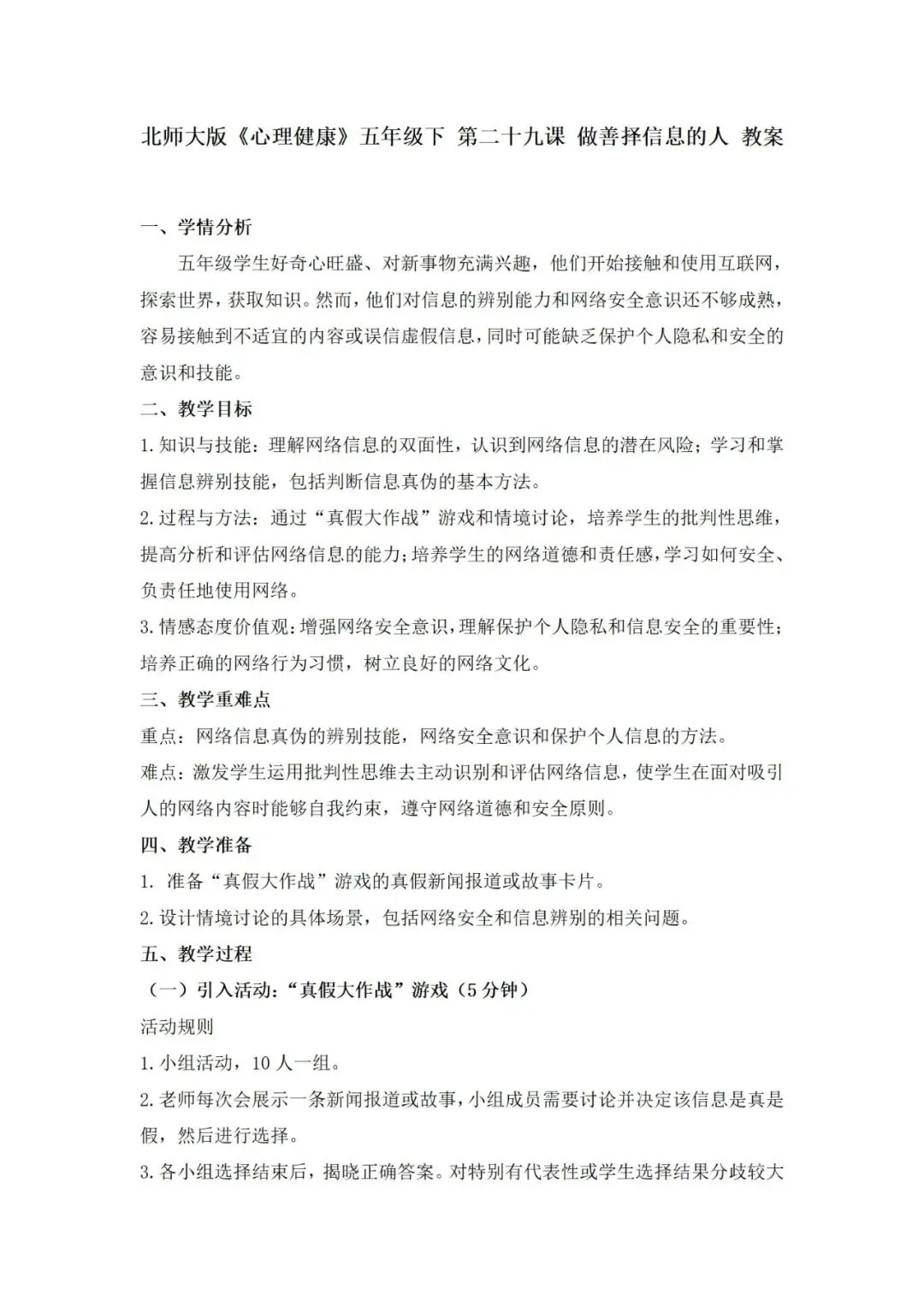 北师大版小学五年级下册 心理健康 教案+课件ppt,可下载!