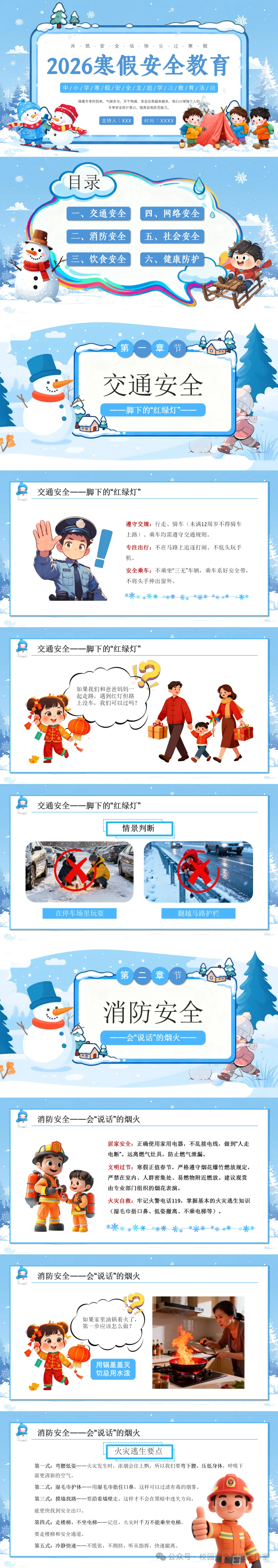 学校还通过家校联动强化安全保障,向家长推送安全提示,明确监护责任,形成安全教育合力。同时,做好假期值班值守与应急响应准备,确保通讯畅通,遇突发事件能及时妥善处置,为全体师生的平安寒假保驾护航。