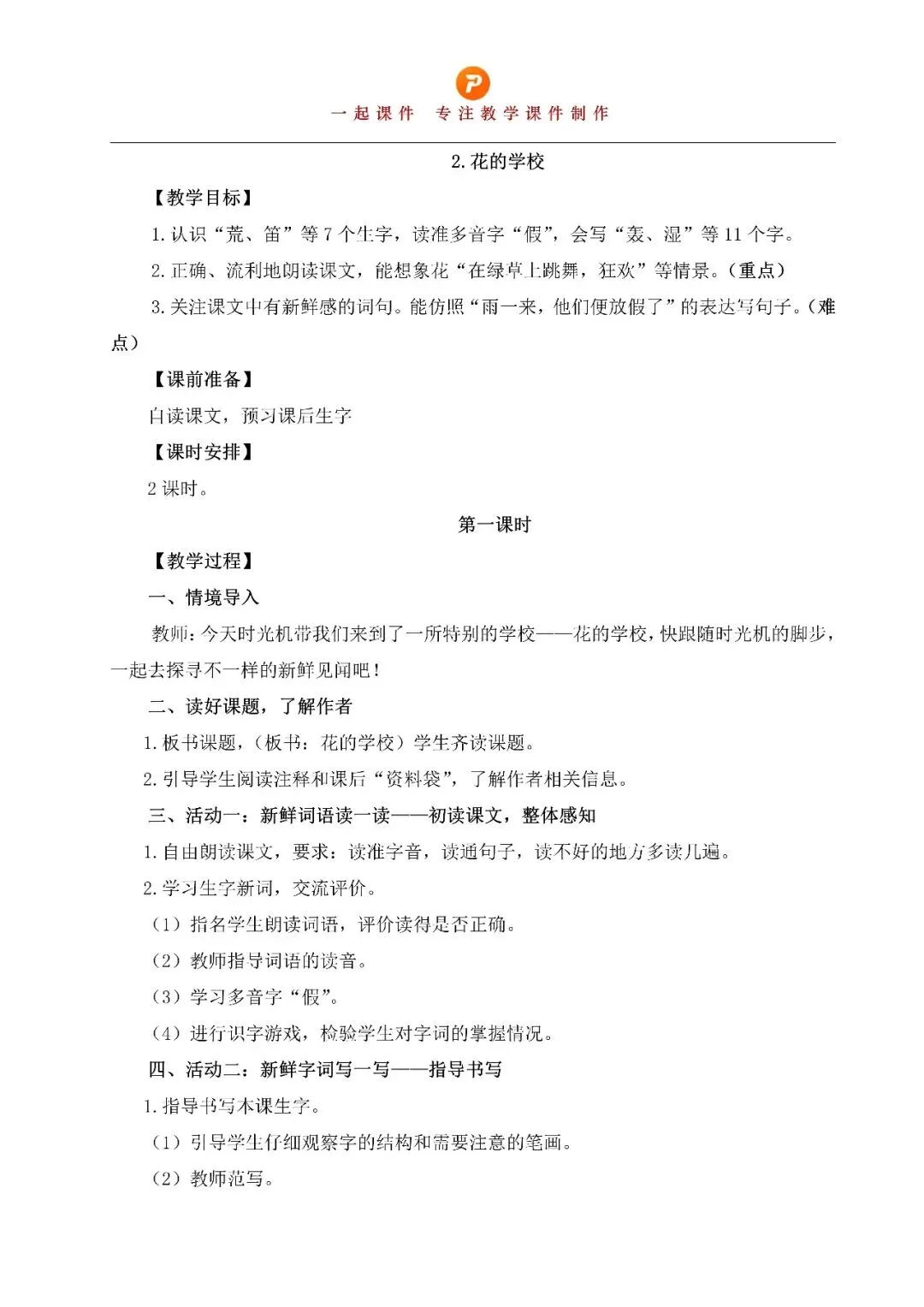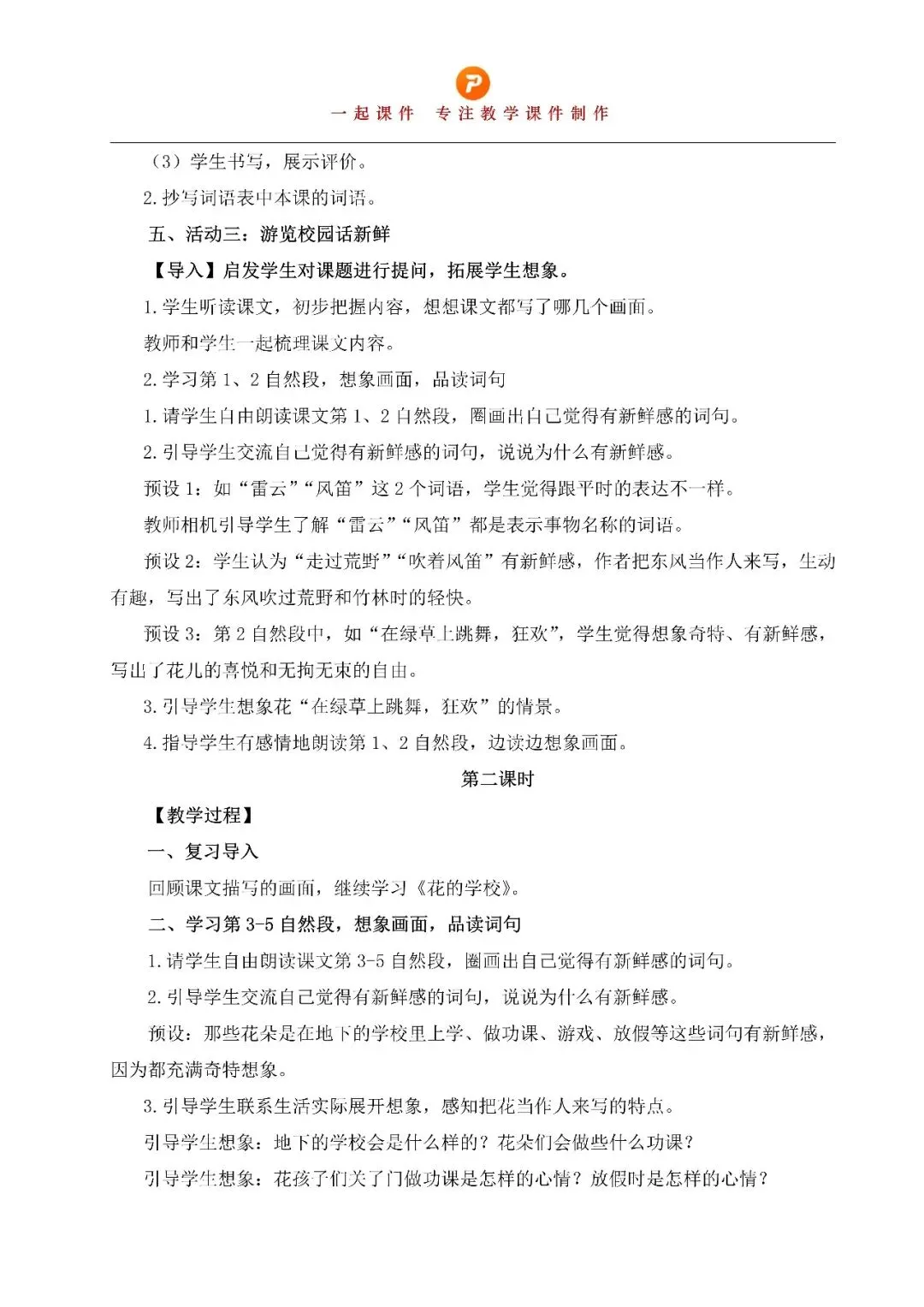 >三下第一单元《花的学校》 | 教学课件+教案+逐字稿
