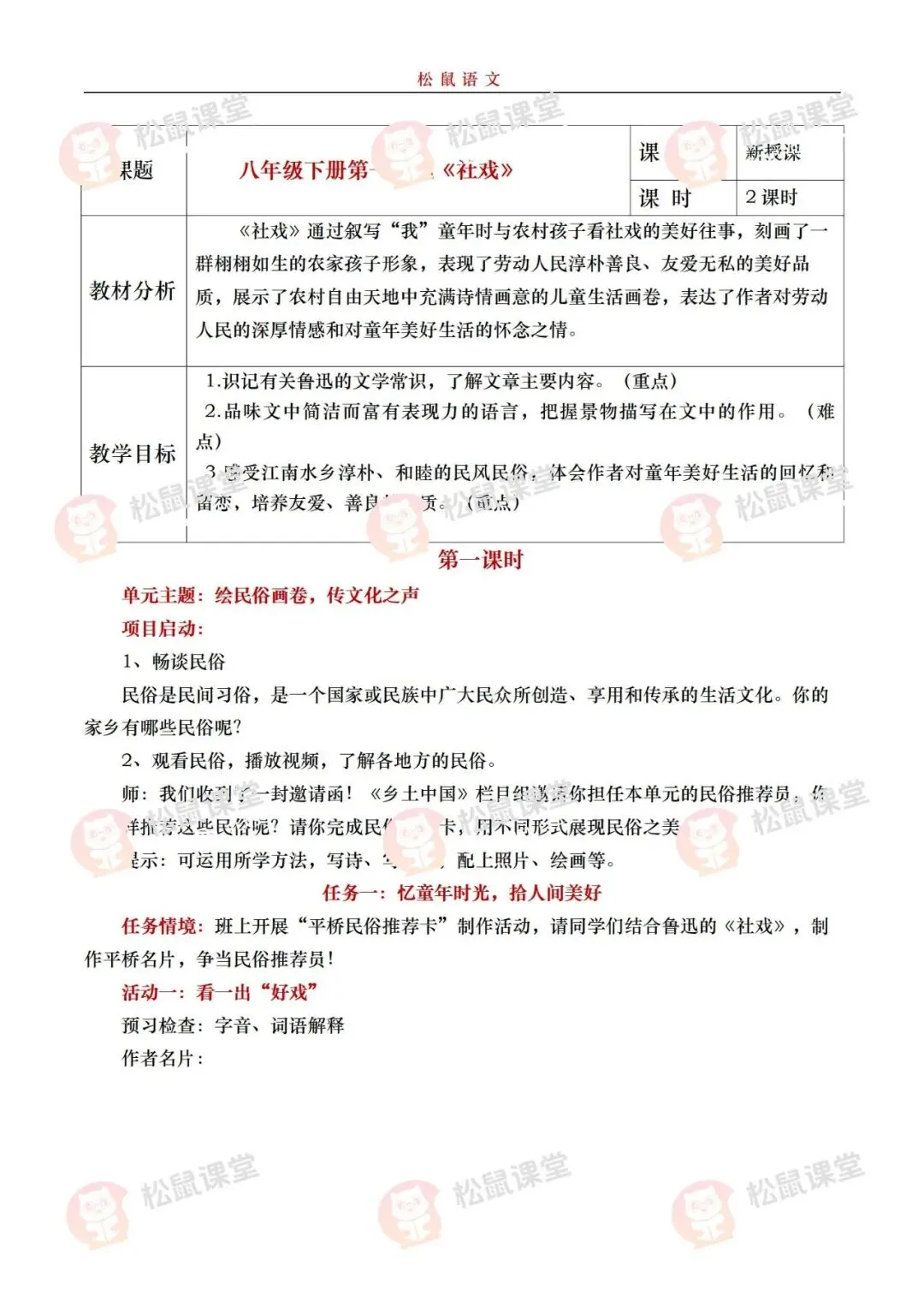 【八下语文】第一单元《社戏》| 教学课件+教学设计