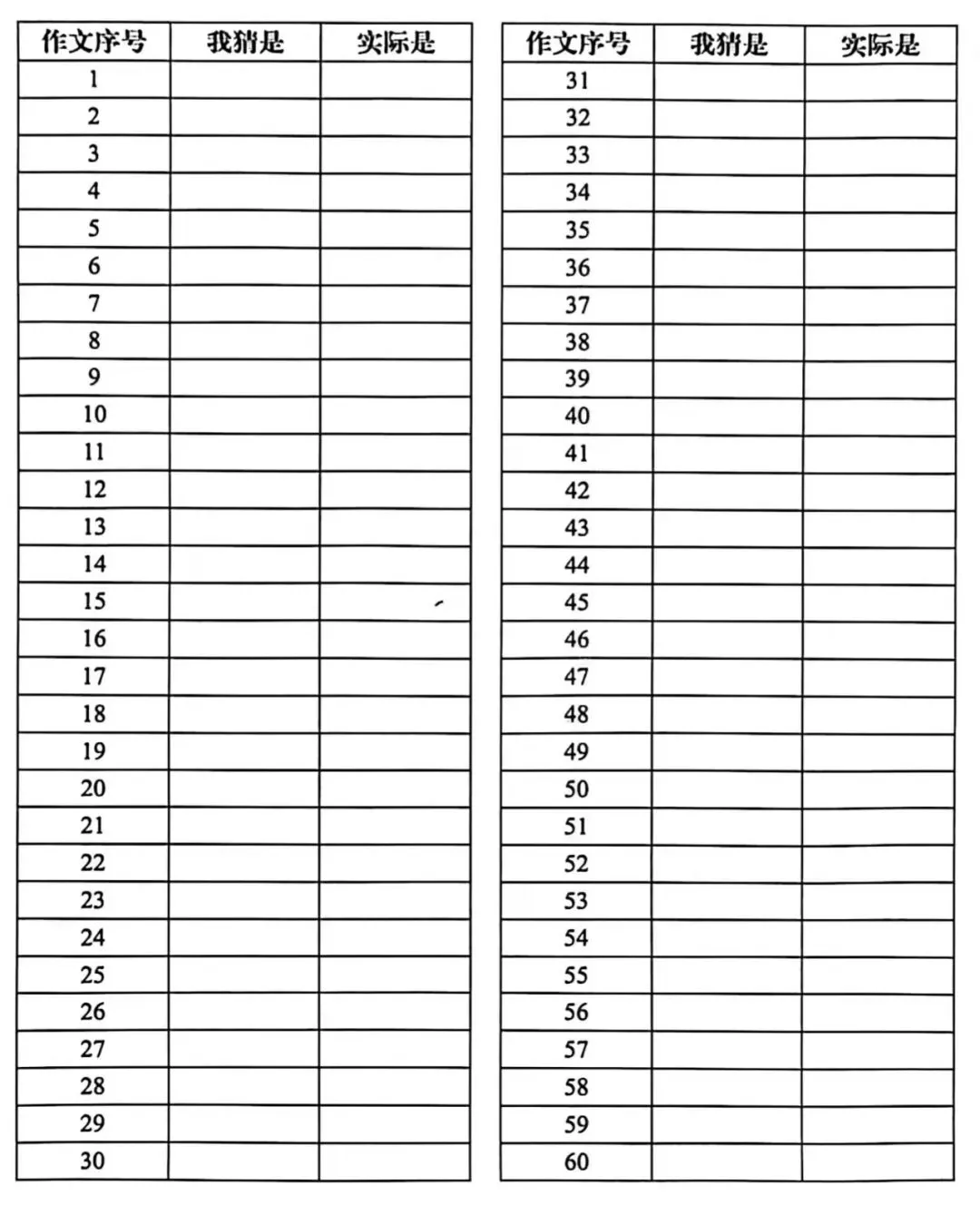 (4)教师宣布每篇作文的作者,学生互相检查对方猜对了几个。