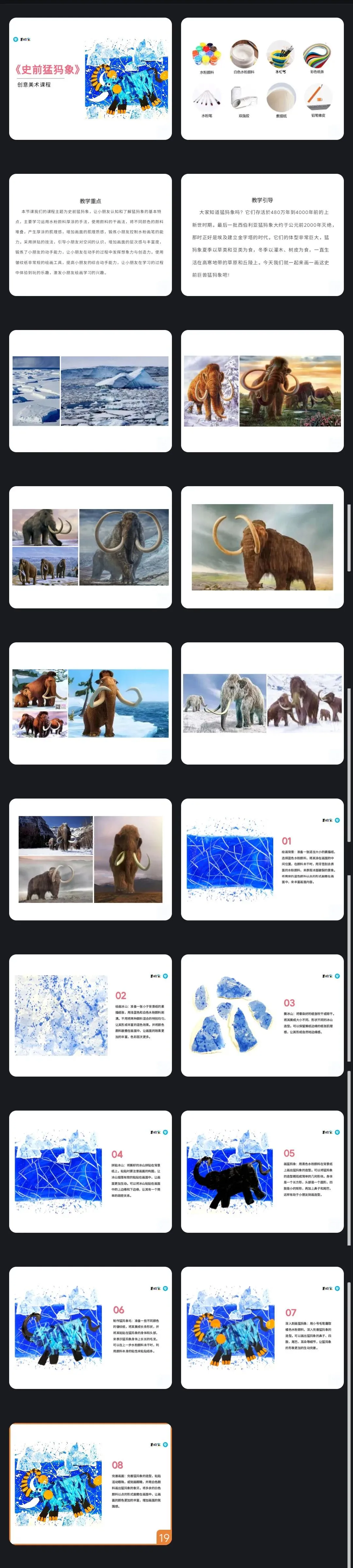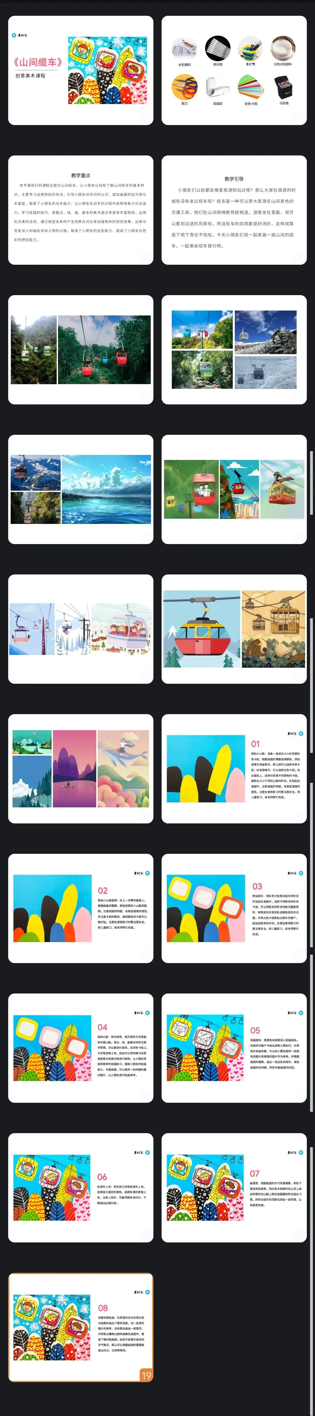 创意美术课件模板‖ 青藤丝瓜、热情的沙漠、山间缆车、神奇小丑、史前猛犸象、