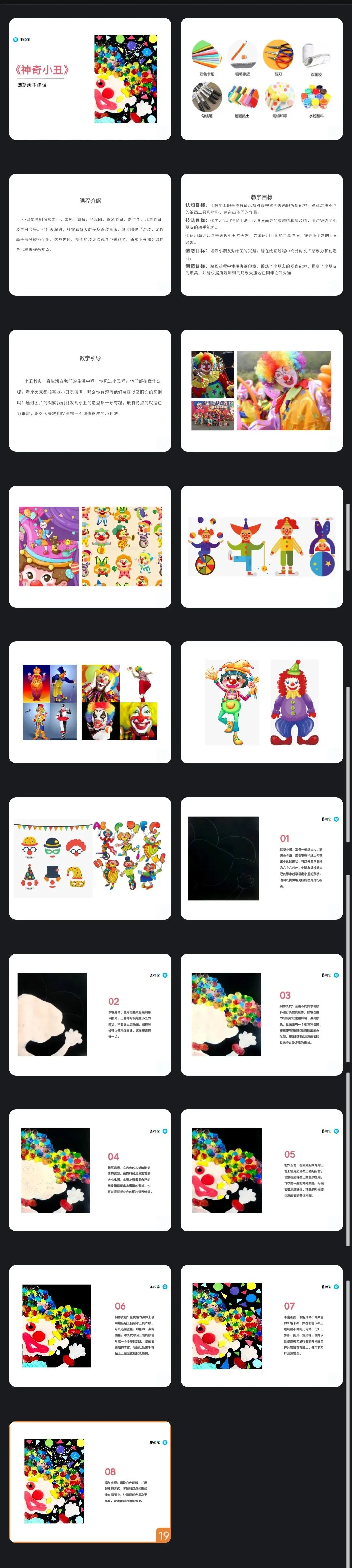 >创意美术课件模板‖ 青藤丝瓜、热情的沙漠、山间缆车、神奇小丑、史前猛犸象、