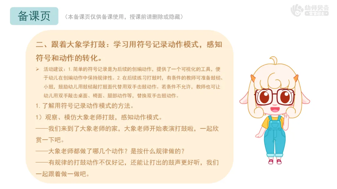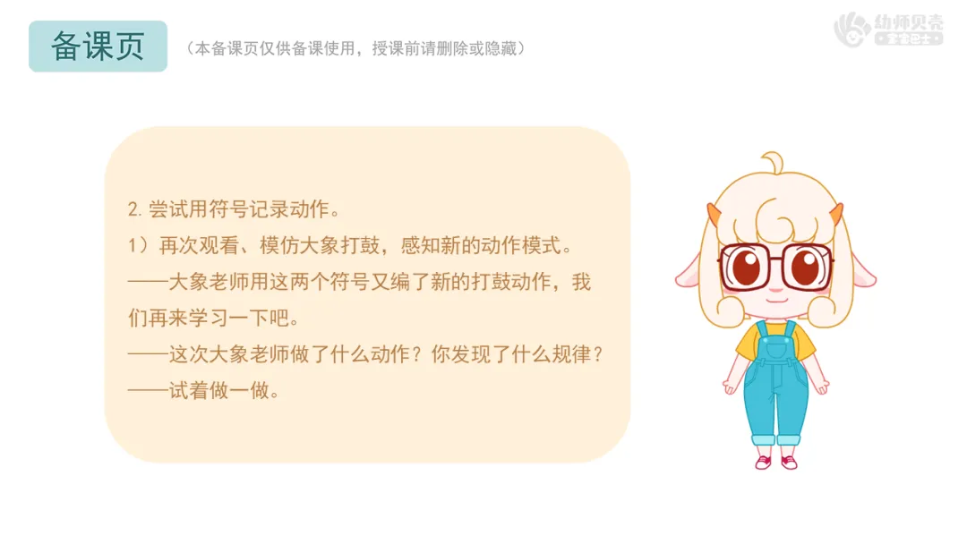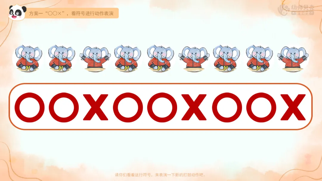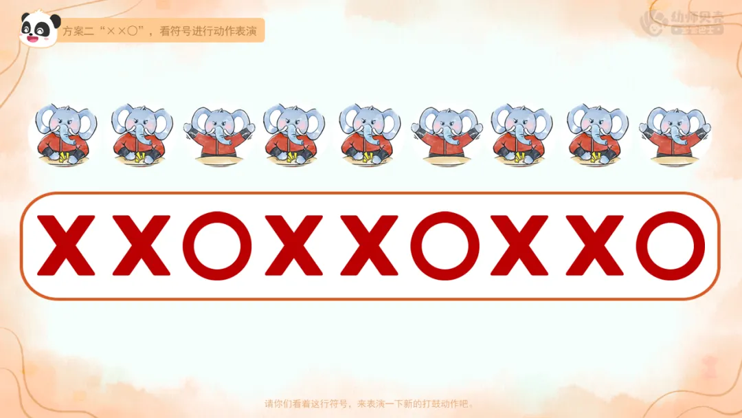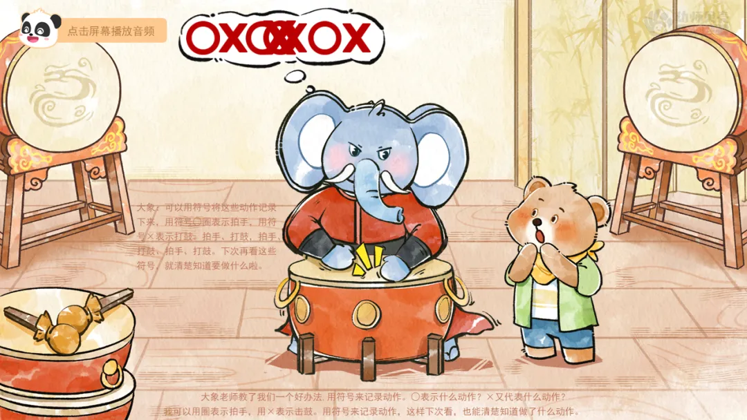 二、跟着大象学打鼓:学习用符号记录动作模式,感知符号和动作的转化。