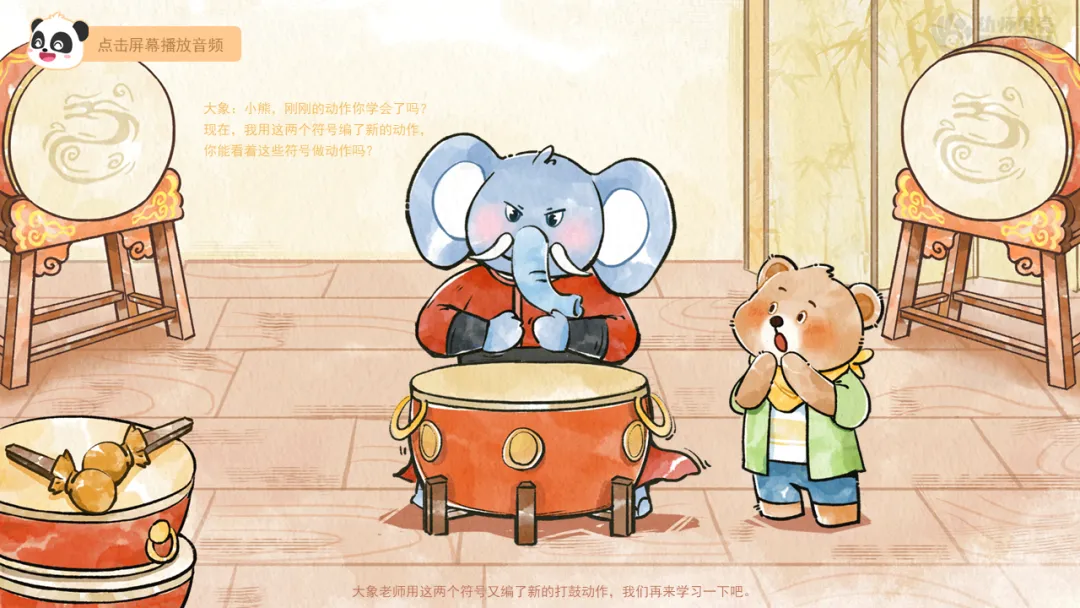 ——大象老师用这两个符号又编了新的打鼓动作,我们再来学习一下吧。