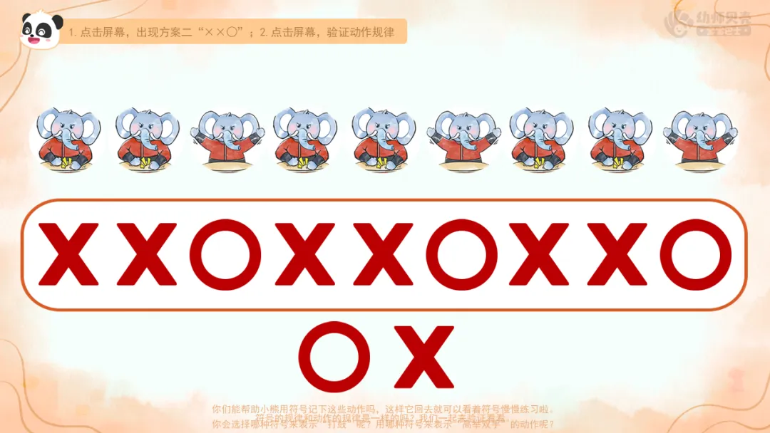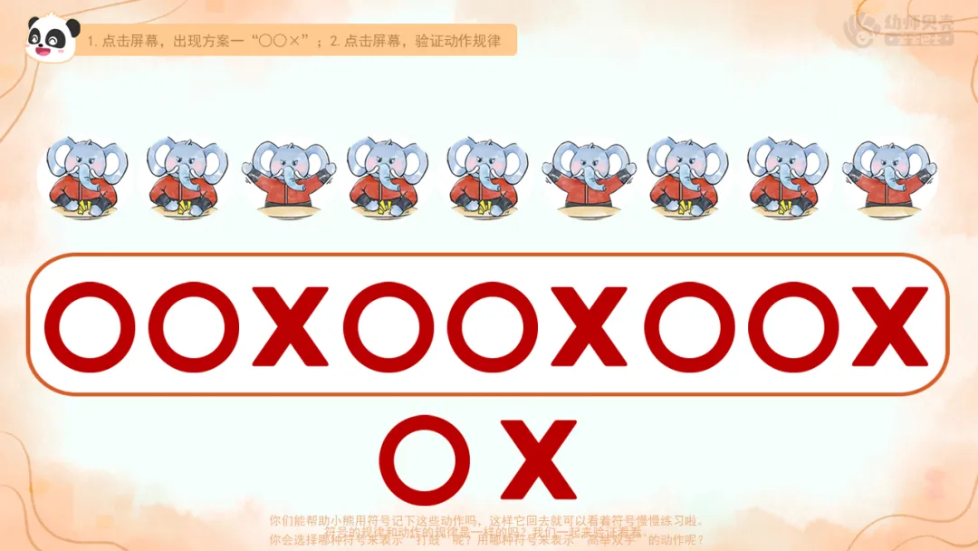 ——大象老师教了我们一个好办法,用符号来记录动作。○表示什么动作?×又代表什么动作?