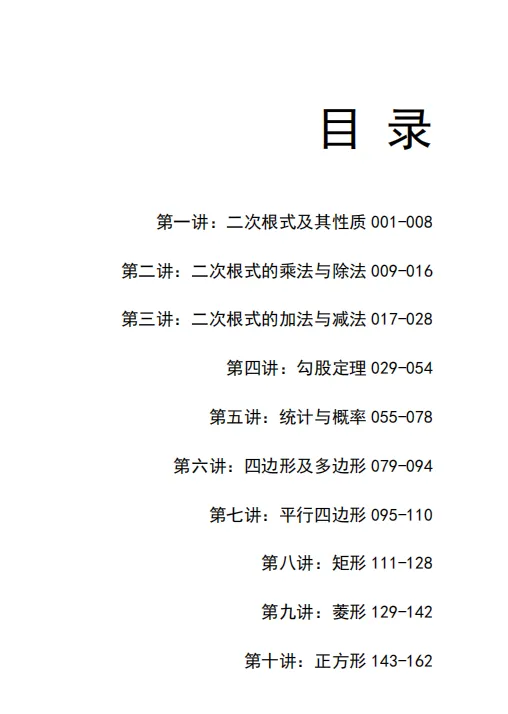 孩子自主预习的“金牌教练”:系统性的专题编排,相当于一份详细的预习路线图。孩子可按计划每日推进,攻克下学期重难点(如勾股定理、特殊平行四边形)。