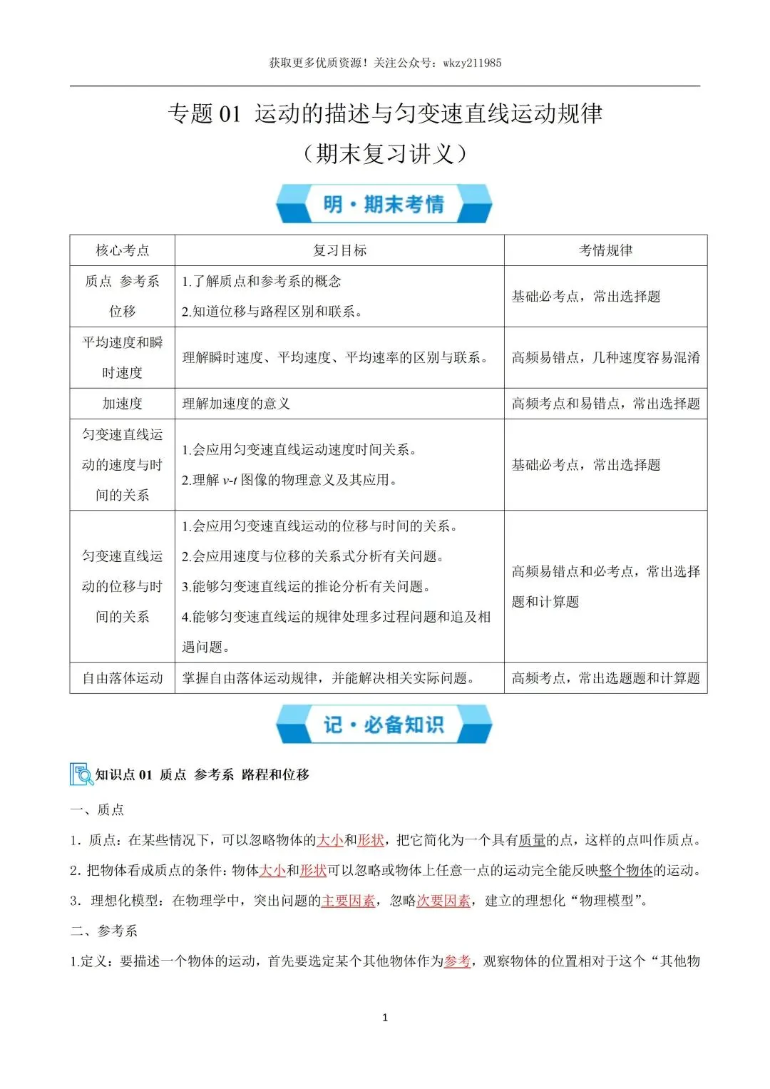 >2026年高一物理上学期期末复习——讲义+课件+知识清单+专项训练+模拟试卷(word+ppt)