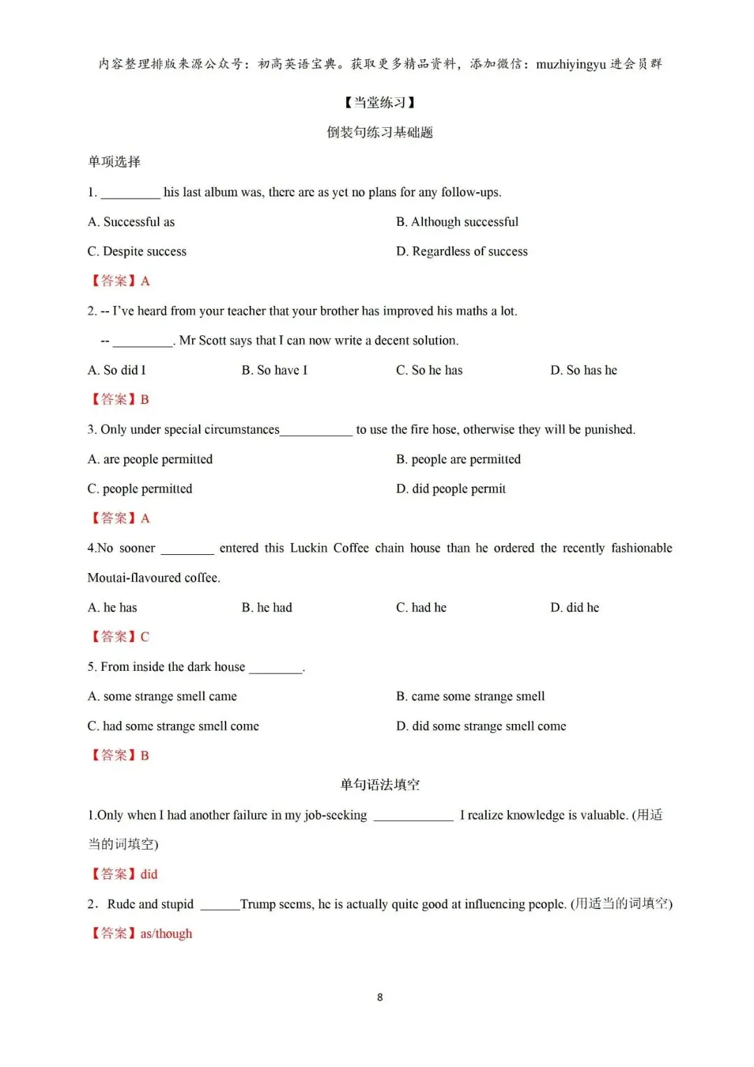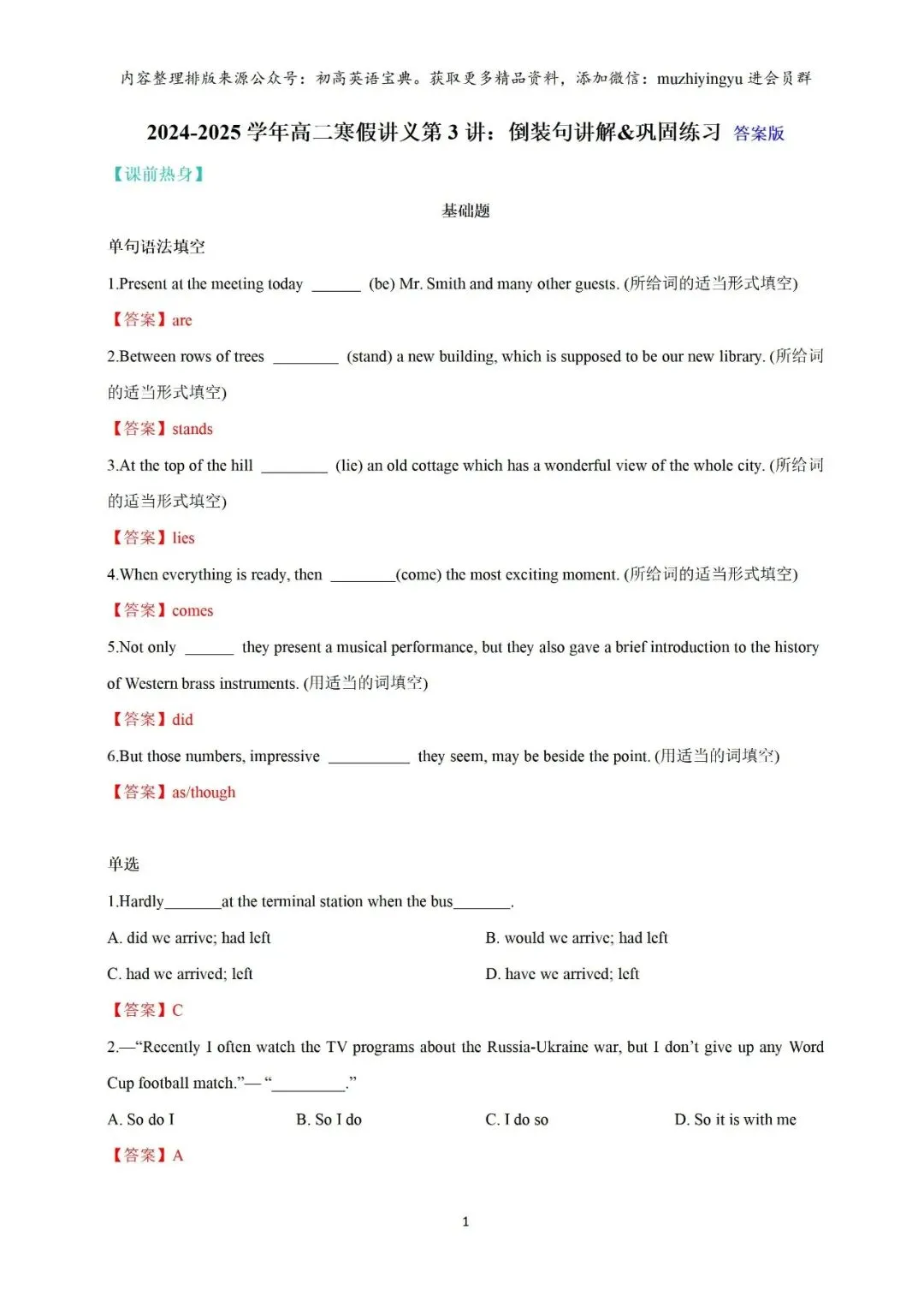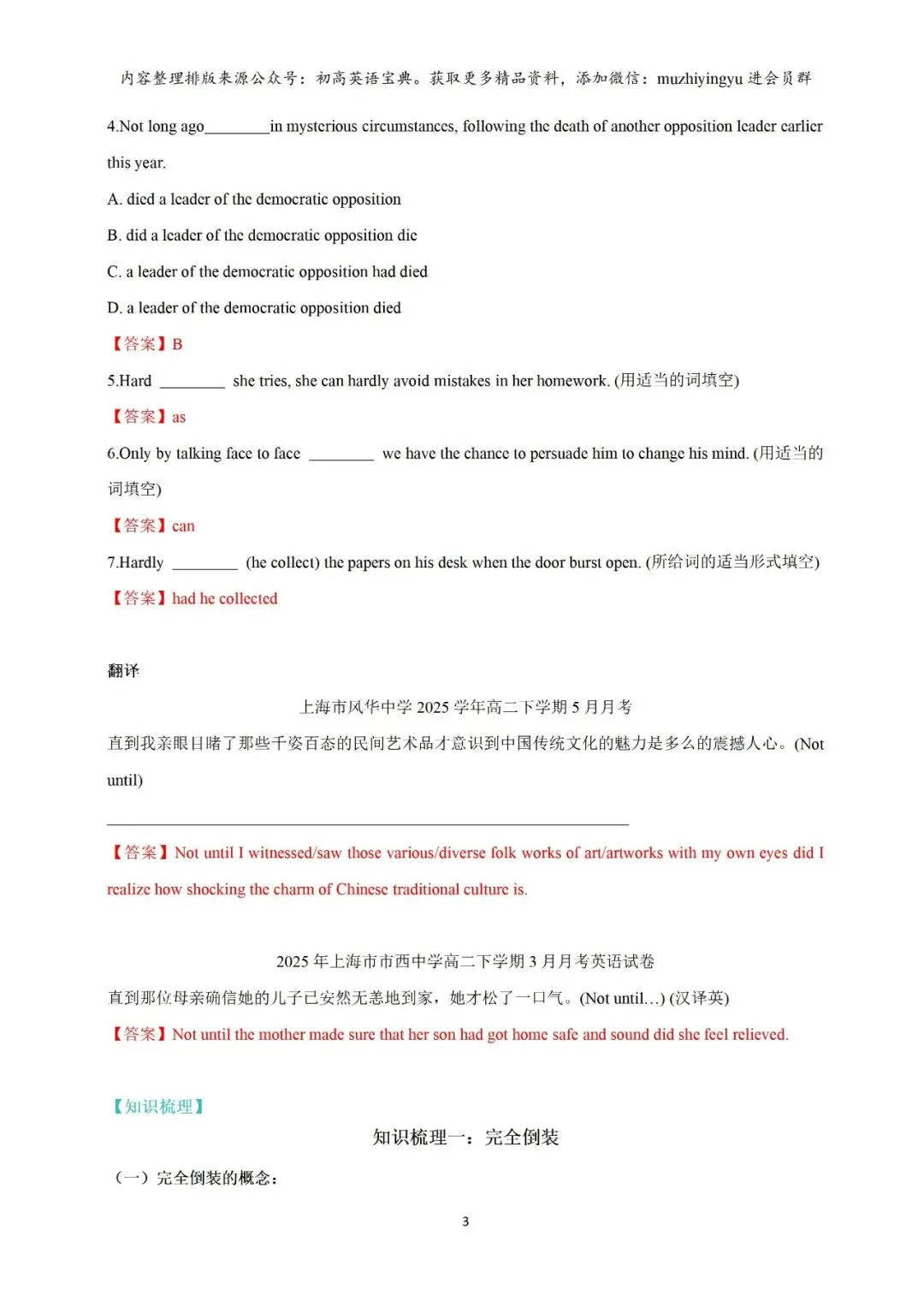 >2026年上海高二寒假讲义第3讲:倒装句讲解