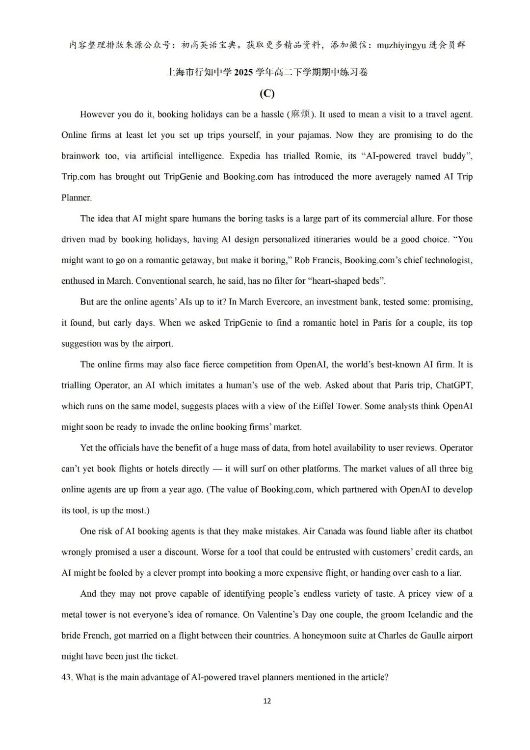 2017-2025年上海市四校&八大&名校高一年级英语入学分班考&9月试卷汇总17套
