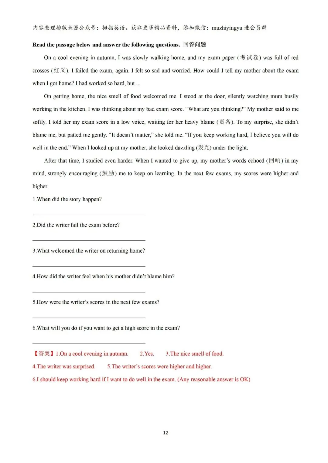 方法:点击本页左上角的“拇指英语”进入公众号页面→点击右上角3个小点→点击“设为星标”