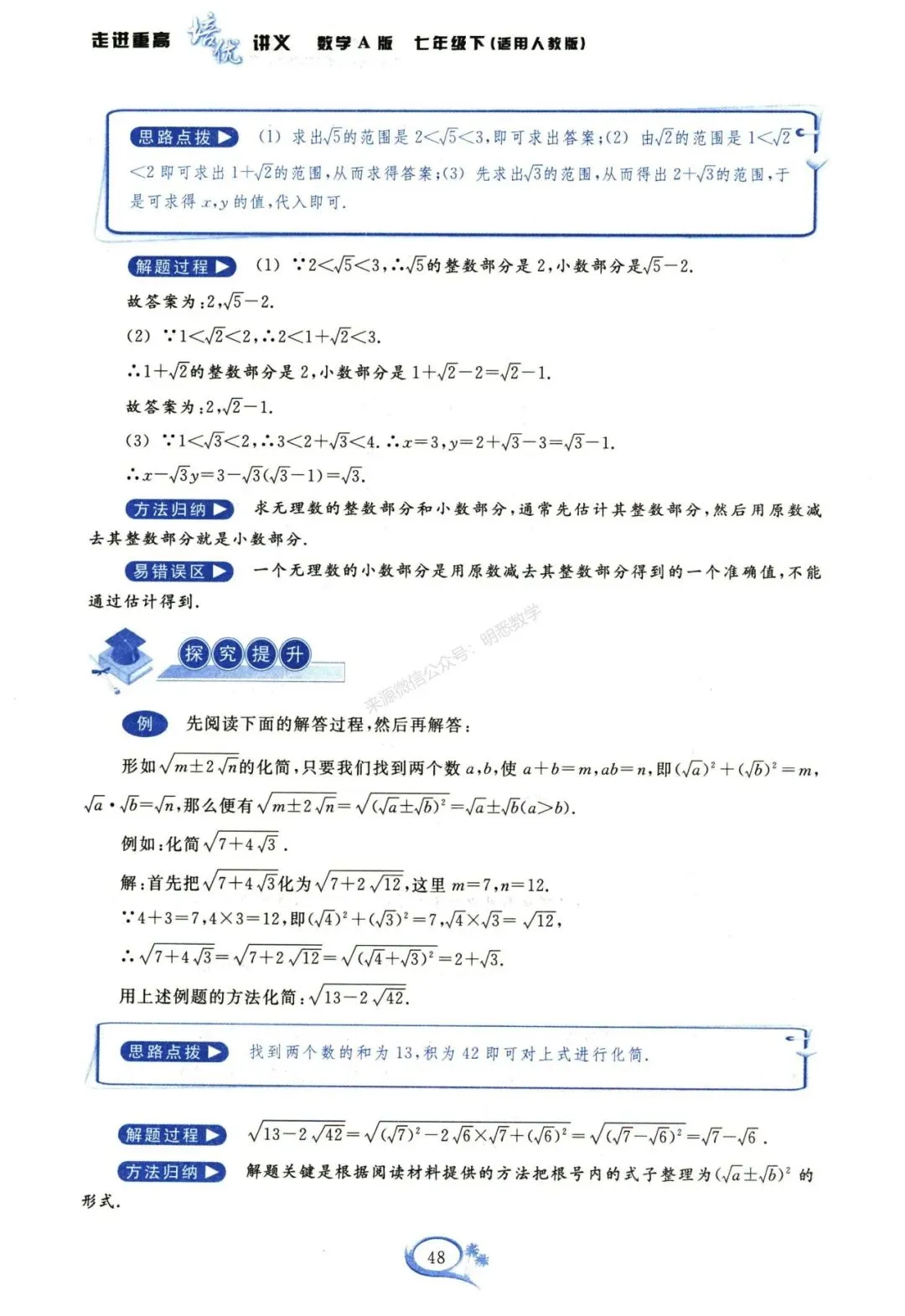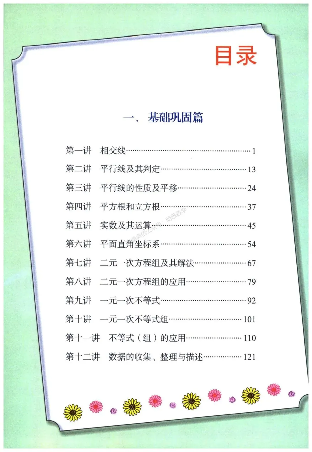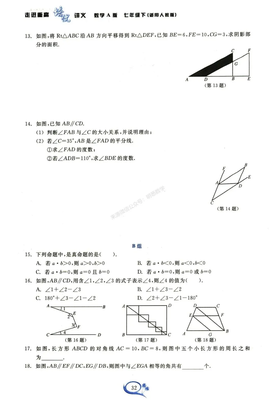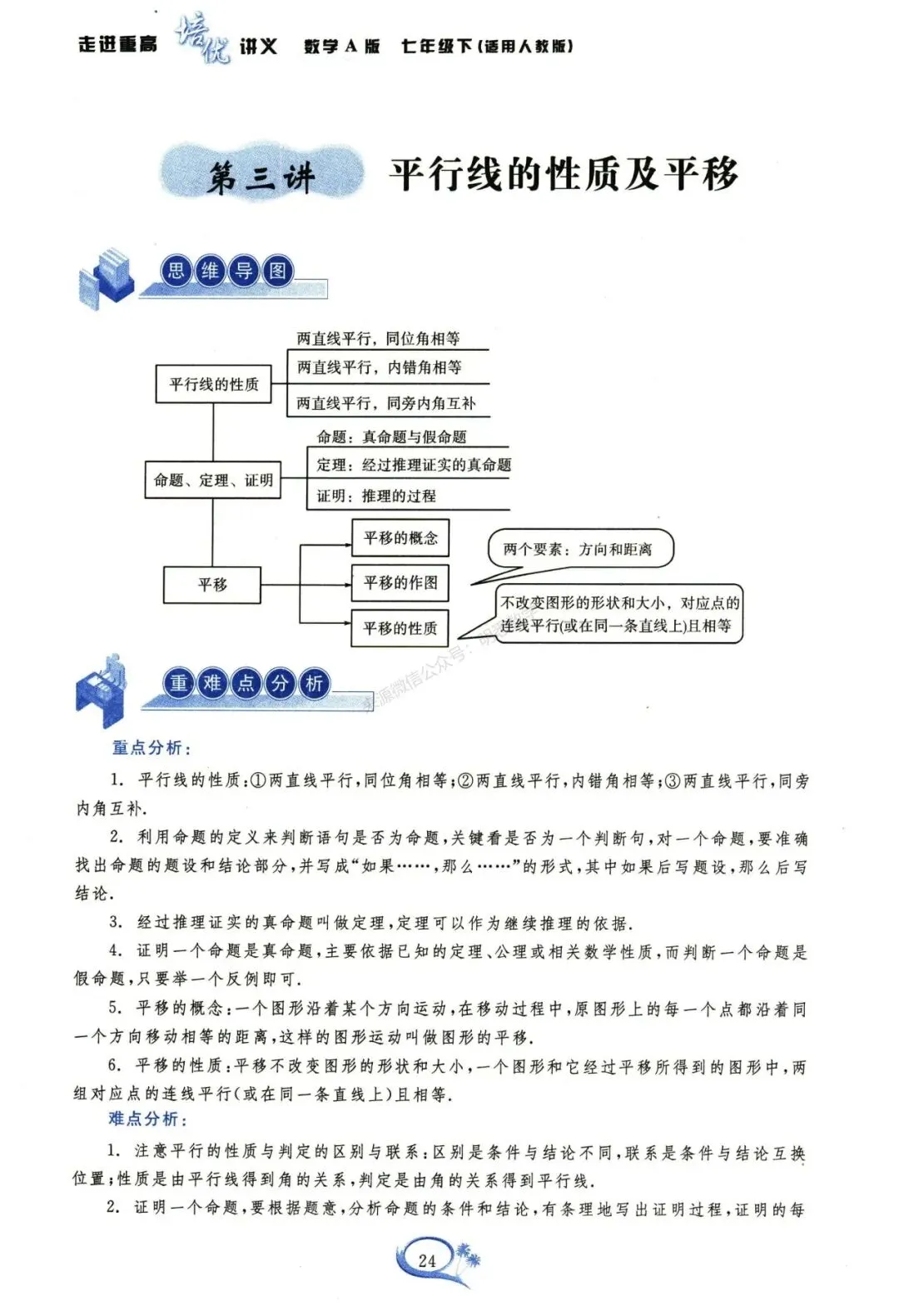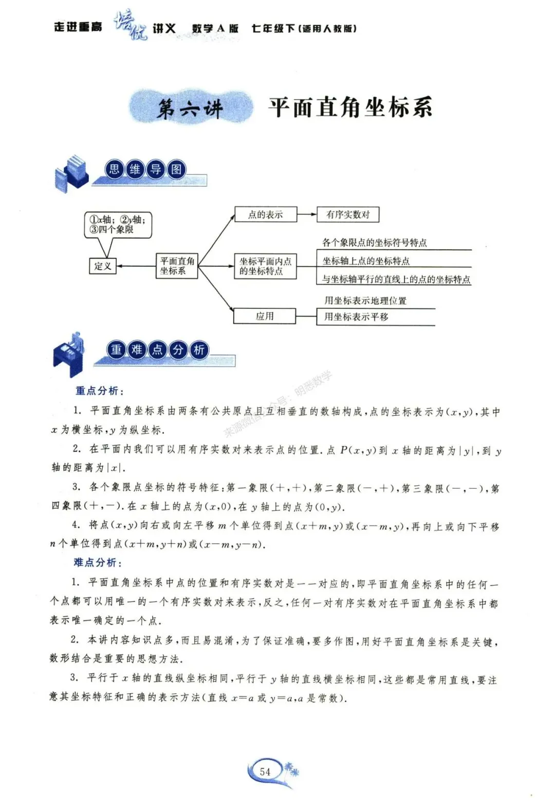 今天给大家分享的是七下数学培优讲义16讲。每一讲的内容设计层层递进,逻辑清晰:开篇以思维导图构建知识框架,帮大家快速梳理本讲核心内容;随后聚焦重难点分析,精准拆解本讲的重点考点与易错难点,同时深度剖析课本知识点,夯实基础;紧接着是例题精析板块,例题由浅入深、从基础到提升梯度排布,搭配思路点拨、详细解题过程与方法归纳,助力大家吃透知识点,实现举一反三;最后设置拓展训练,分为A组基础巩固、B组能力提升以及难题提分三大模块,通过一套完整的学习体系,带领大家对新课内容进行系统性学习,高效提升数学能力。