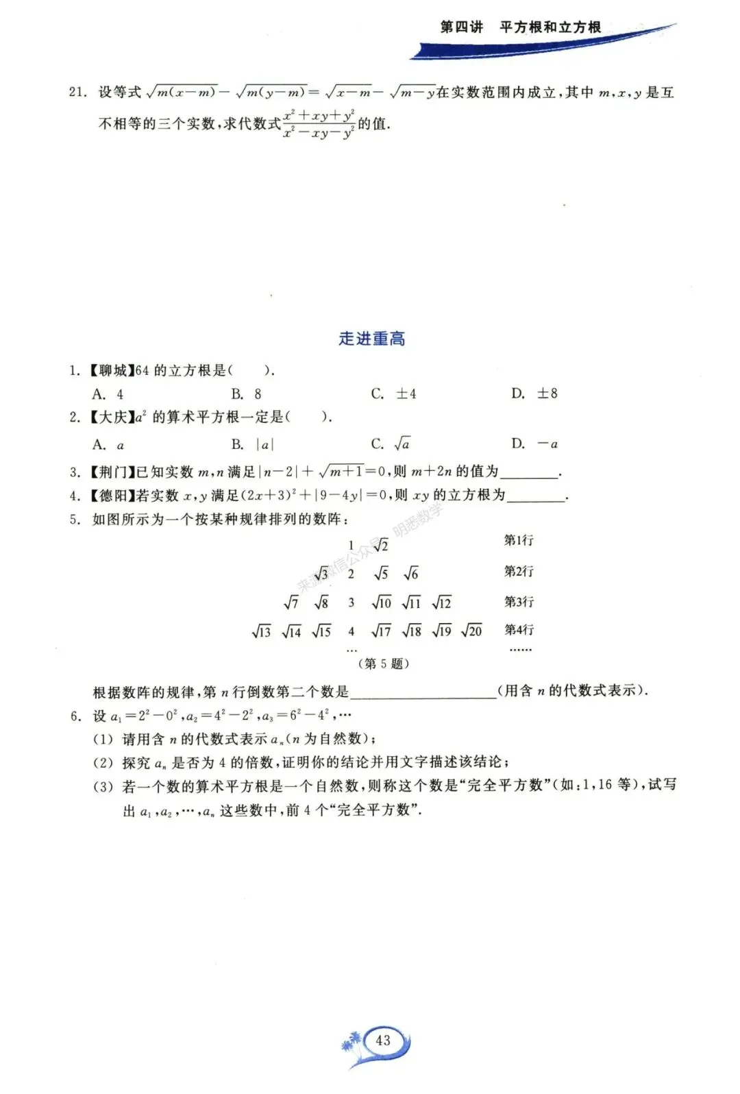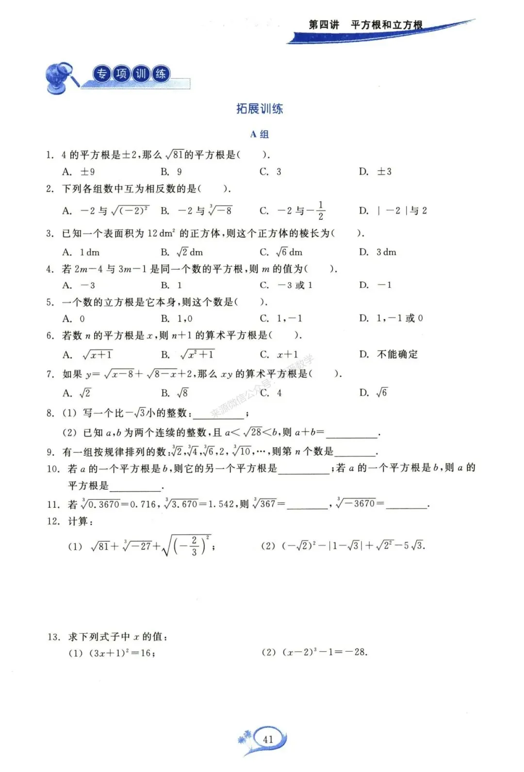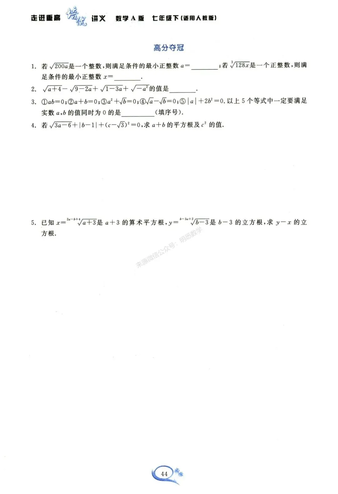 本文全套无水印pdf电子版(学生版+答案版)已发至初中数学资料分享QQ群:575919962,在群中的成员可直接下载。若您需要成为群会员请点击头像,在公众号对话框中回复:入群