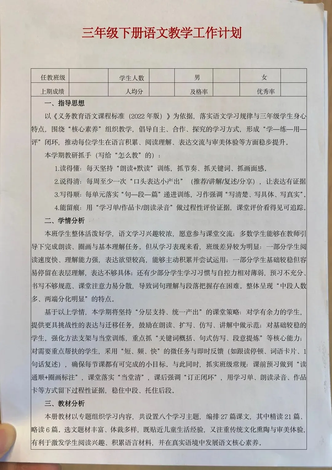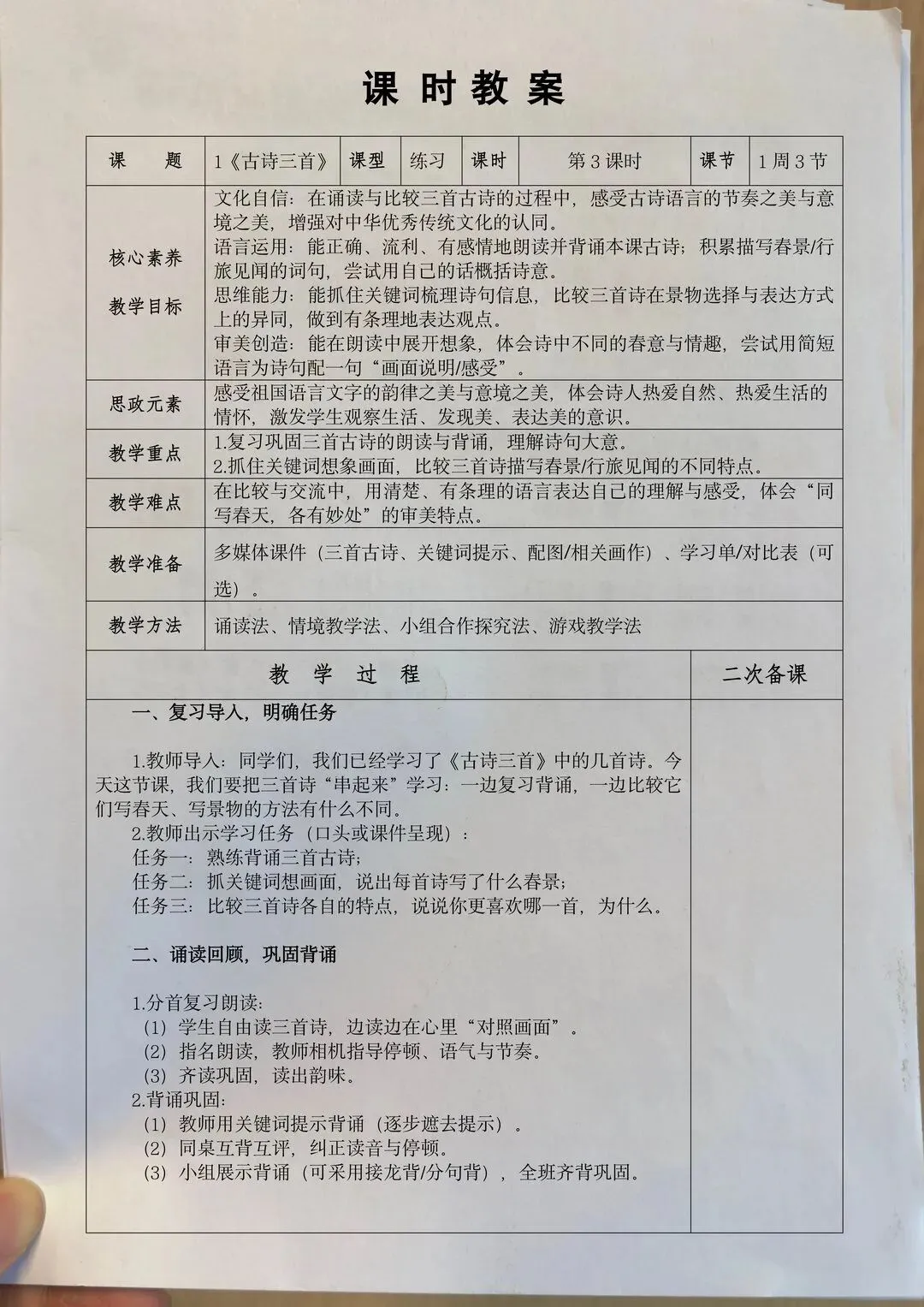 >2026春季三下语文核心素养教案(二次备课)