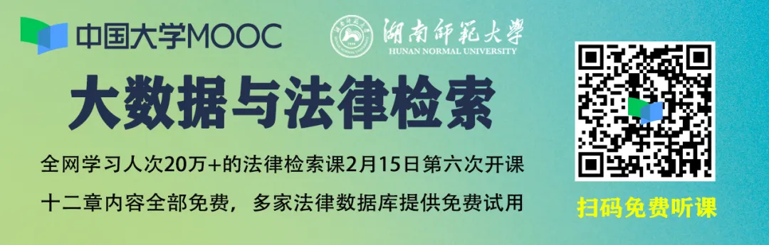 福利三:关注“法律检索”公众号,后台回复“暑期学校”即可获取首届“大数据与法律检索”暑期学校课程PPT。回复“PPT”即可获得中国大学MOOC《大数据与法律检索》主讲人在深圳律协授课的PPT(六百多页干货)。