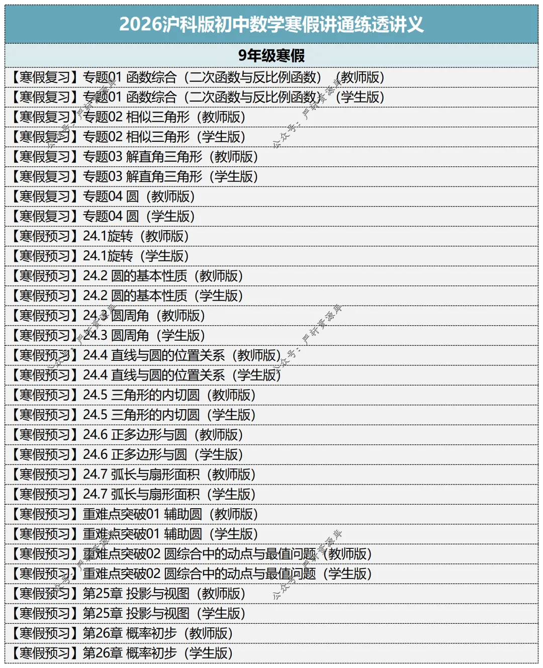 3️⃣【9寒假讲义】2026九年级数学寒假讲通练透(沪科版)复习4专题+预习7讲+章节测试及重难点突破,讲练结合,知识点详细,例题典型,变式练习,课后过关丰富。