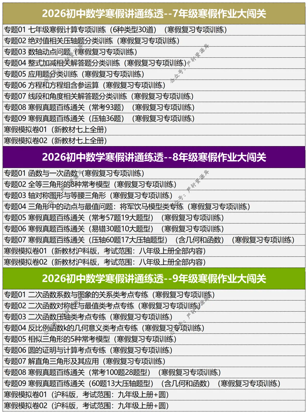 789年级寒假全word无水印,可编辑可打印,教师版❗学生版齐全。讲通练透,讲解详细,练习题丰富足够。适合题目总不够用的老师(78年级符合新教材)