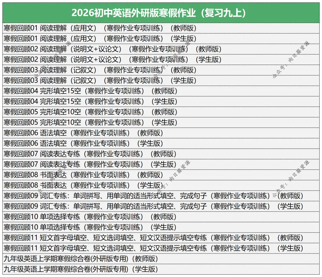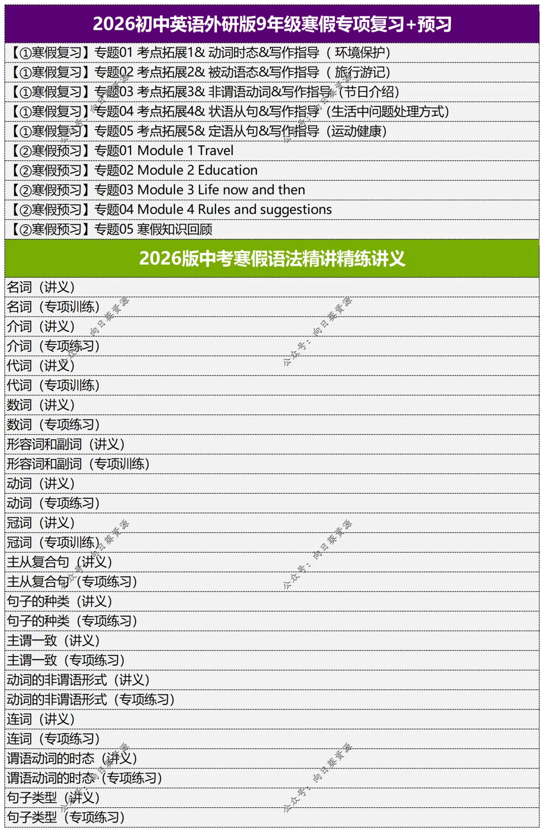 【6】2026初中英语外研版9年级寒假专项复习5专题+预习4专题,预习前四个单元到期中。