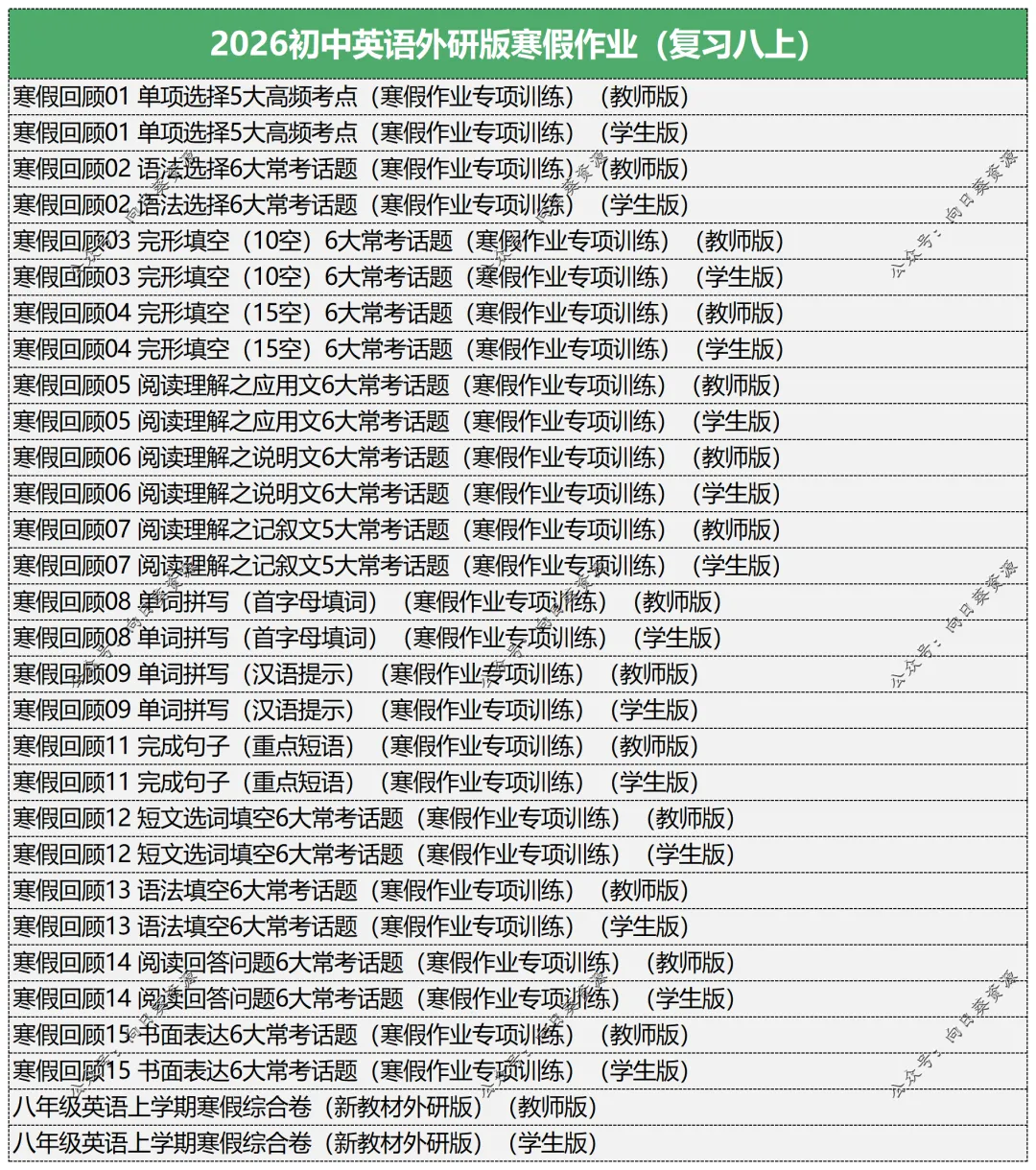 【4】2026初中英语外研版8年级寒假专项复习+预习,预习前三个单元到期中。