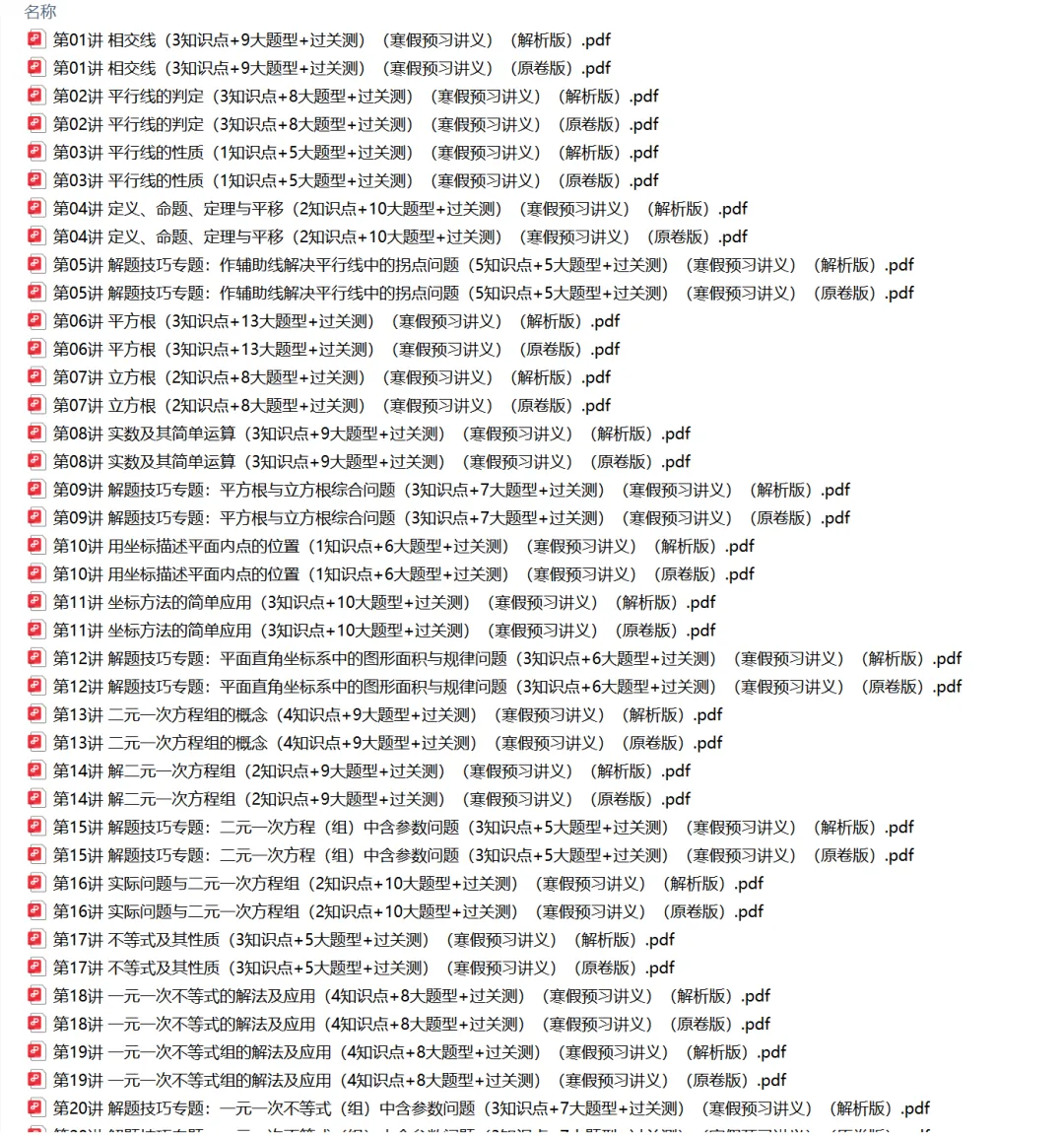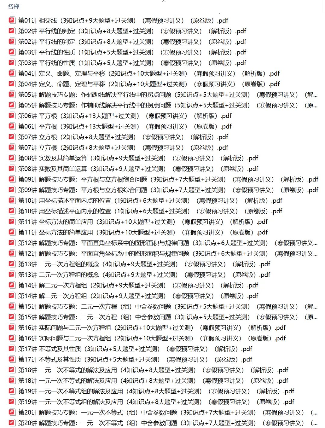 大家好,教习工坊今日分享的是2026春人教版七年级数学下册寒假预习讲义资料,PDF文档,可下载打印。