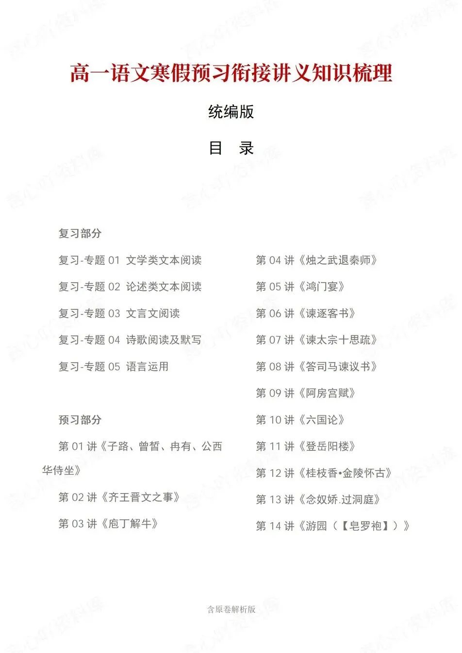 >高中语文-高一寒假衔接预习讲义知识归纳复习练习统编版