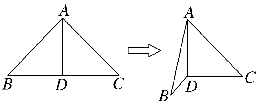 8.如图,△ABC是等腰直角三角形,∠BAC=90°,AB=AC=1,将△ABC沿斜边BC上的高AD折叠,使平面ABD⊥平面ACD,则折叠后BC=1.