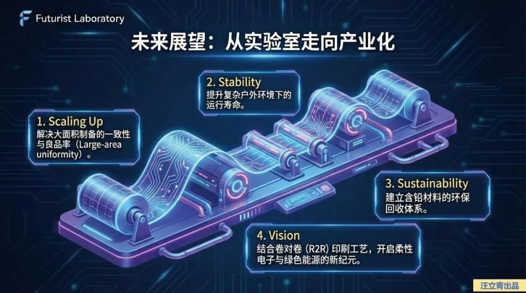尽管FPSCs在效率和稳定性上取得了显著进展,但在基底热稳定性、电极导电性及大面积制备方面仍面临挑战。未来的研究将集中在材料性能的协同提升与界面工程优化,以推动其商业化进程,。
