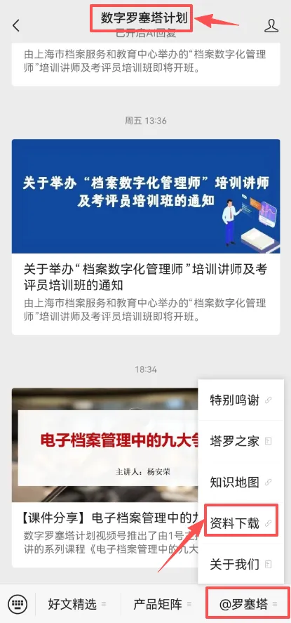 数字罗塞塔计划公众号菜单栏“@罗塞塔”——“资料下载”