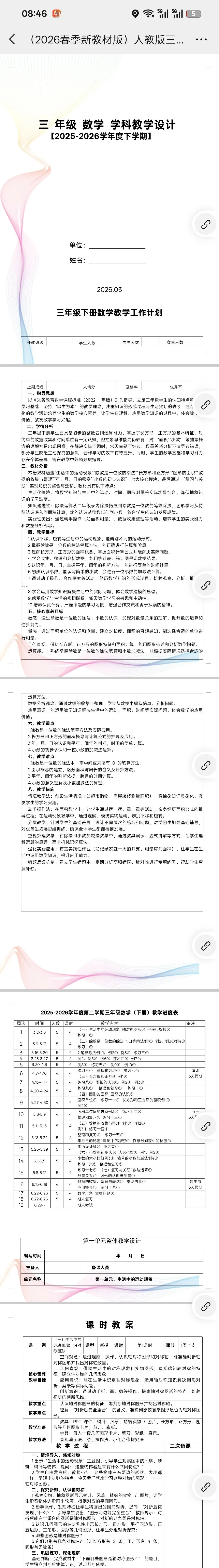 >2026春新版️ 部编版三年级下册数学教案二备和反思栏