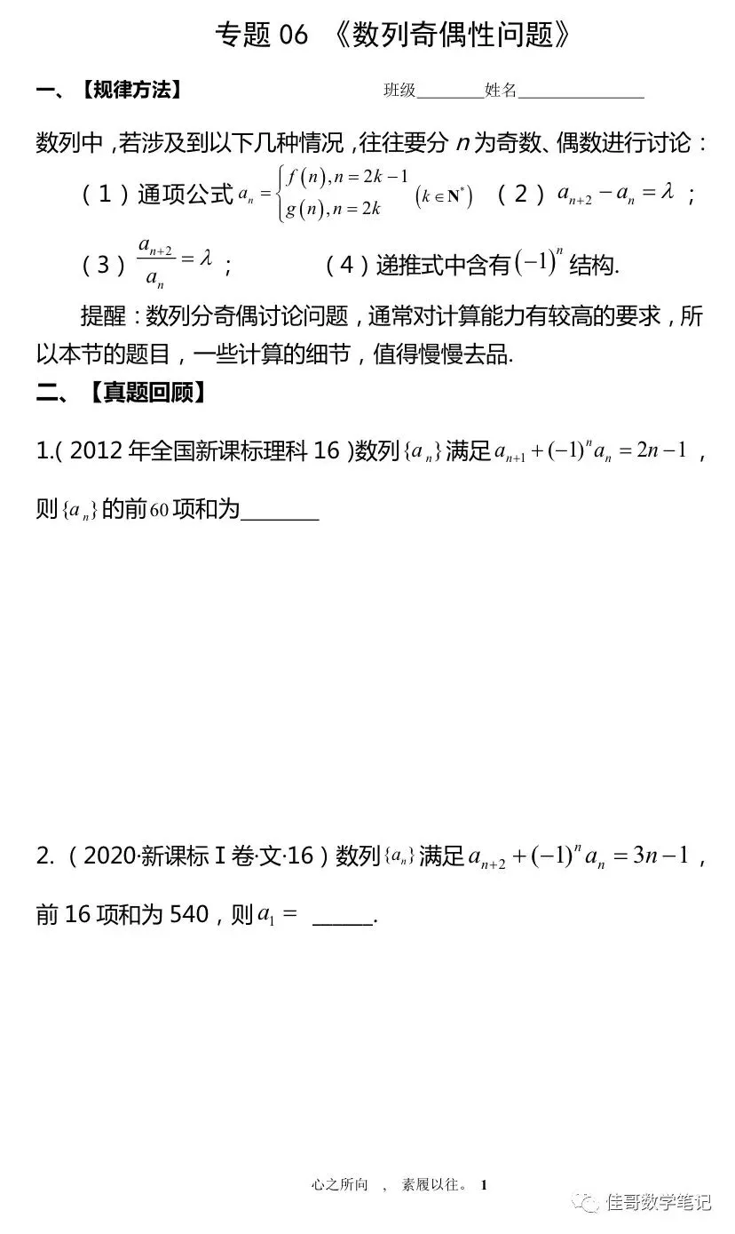 【培优讲义专题06:数列奇偶性问题】