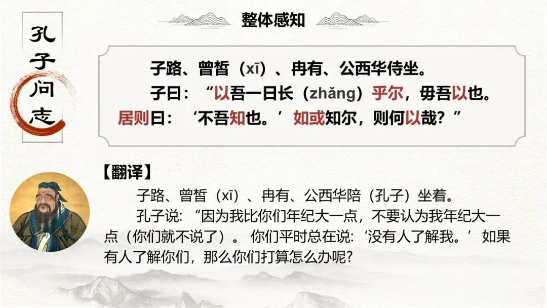 《子路、曾皙、冉有、公西华侍坐》PPT