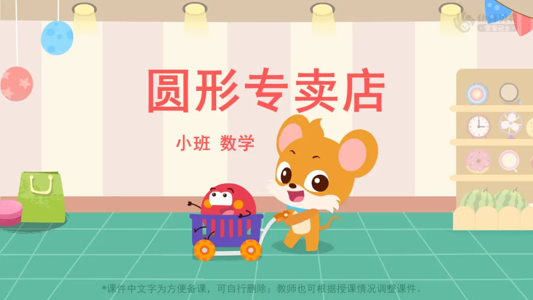 l课件准备:“圆形专卖店”情景图片;“各种形状”组图;“去进货”组图;游戏背景音乐。