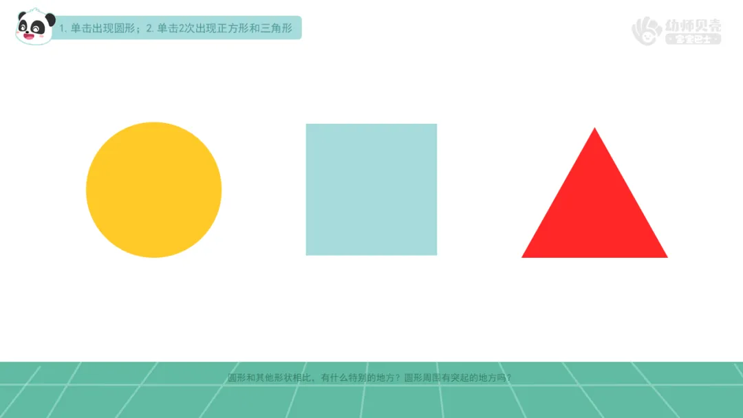 小结:圆形圆圆的,没有角,四周都是平滑的。
