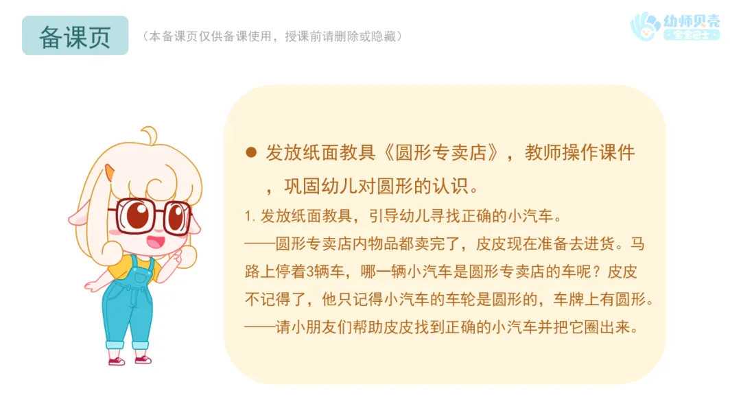 l发放纸面教具《圆形专卖店》,教师操作课件,巩固幼儿对圆形的认识。