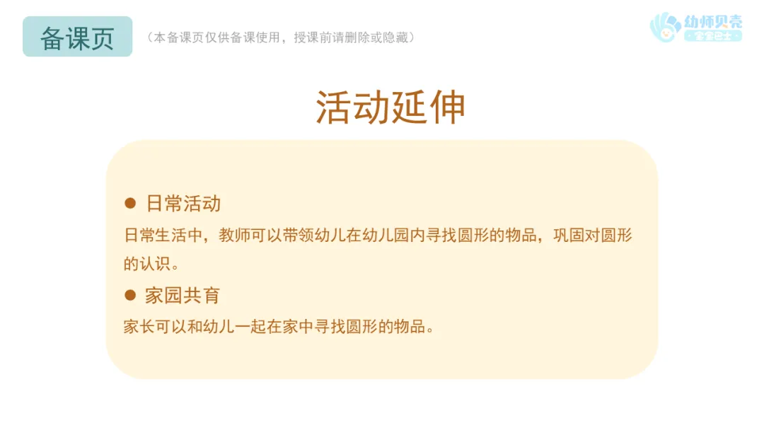 日常生活中,教师可以带领幼儿在幼儿园内寻找圆形的物品,巩固对圆形的认识。
